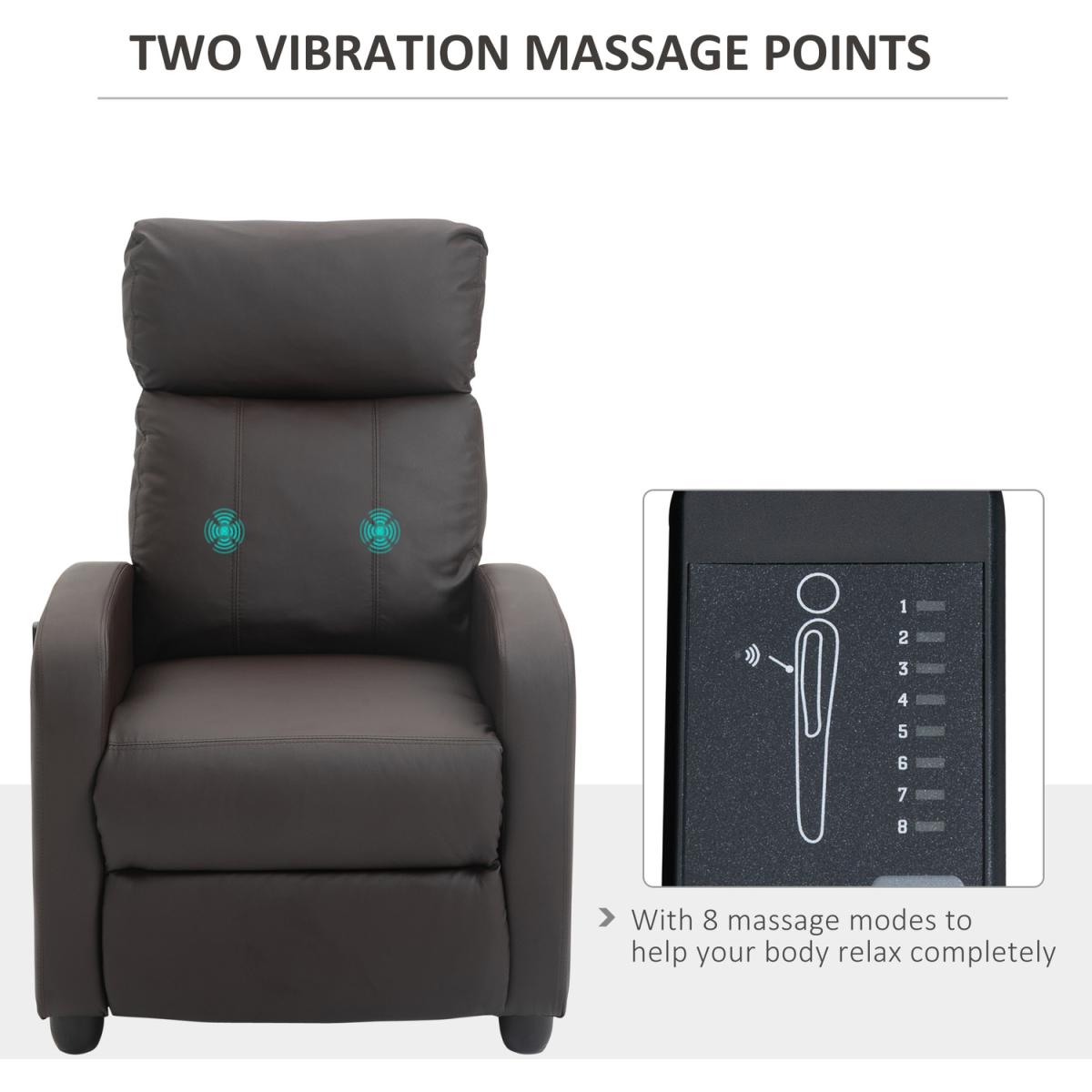 Controlled by the included remote, it is fitted with two vibration massage points on the back, with eight different modes and five intensity levels to pick a setting which is most relaxing for you. The back manually goes back to maximum 150 degrees so you can lean back and relax. It's filled with sponge for comfort, finished with smooth faux leather for a touch of timeless style.