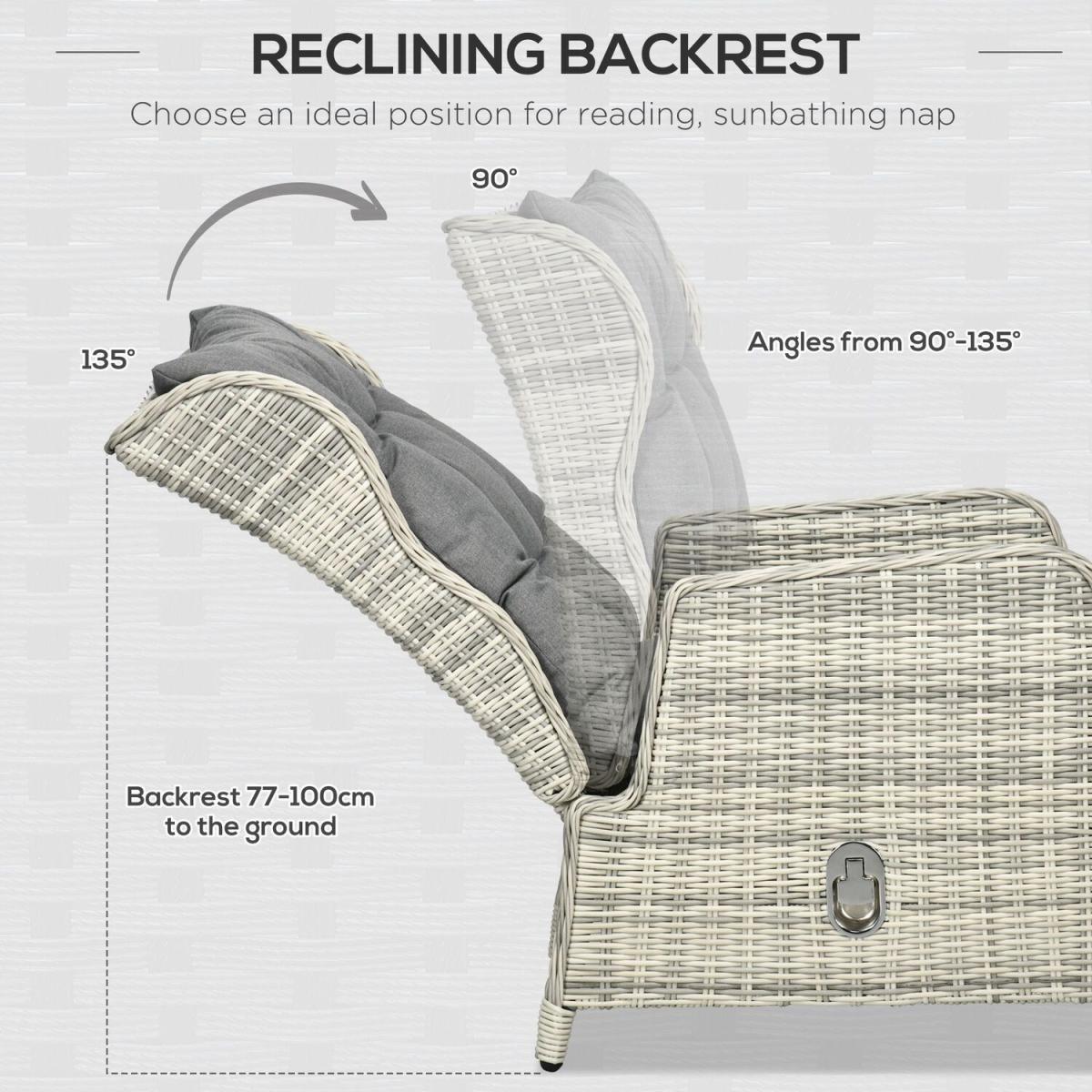This rattan lounger set from Outsunny is an ideal addition to enjoy the summers. Made of lightweight aluminium frame and half-round PE rattan, in sturdy construction which will last for years to come. It comes with thick padded cushions to offer superior comfort. The side table is topped with toughened tempered glass for stylish and easy to clean. Backrest with 90 degree-135 degree angle adjustable provide comfortable lounging experience, enjoy your outdoors summer to the fullest with this lounger set.