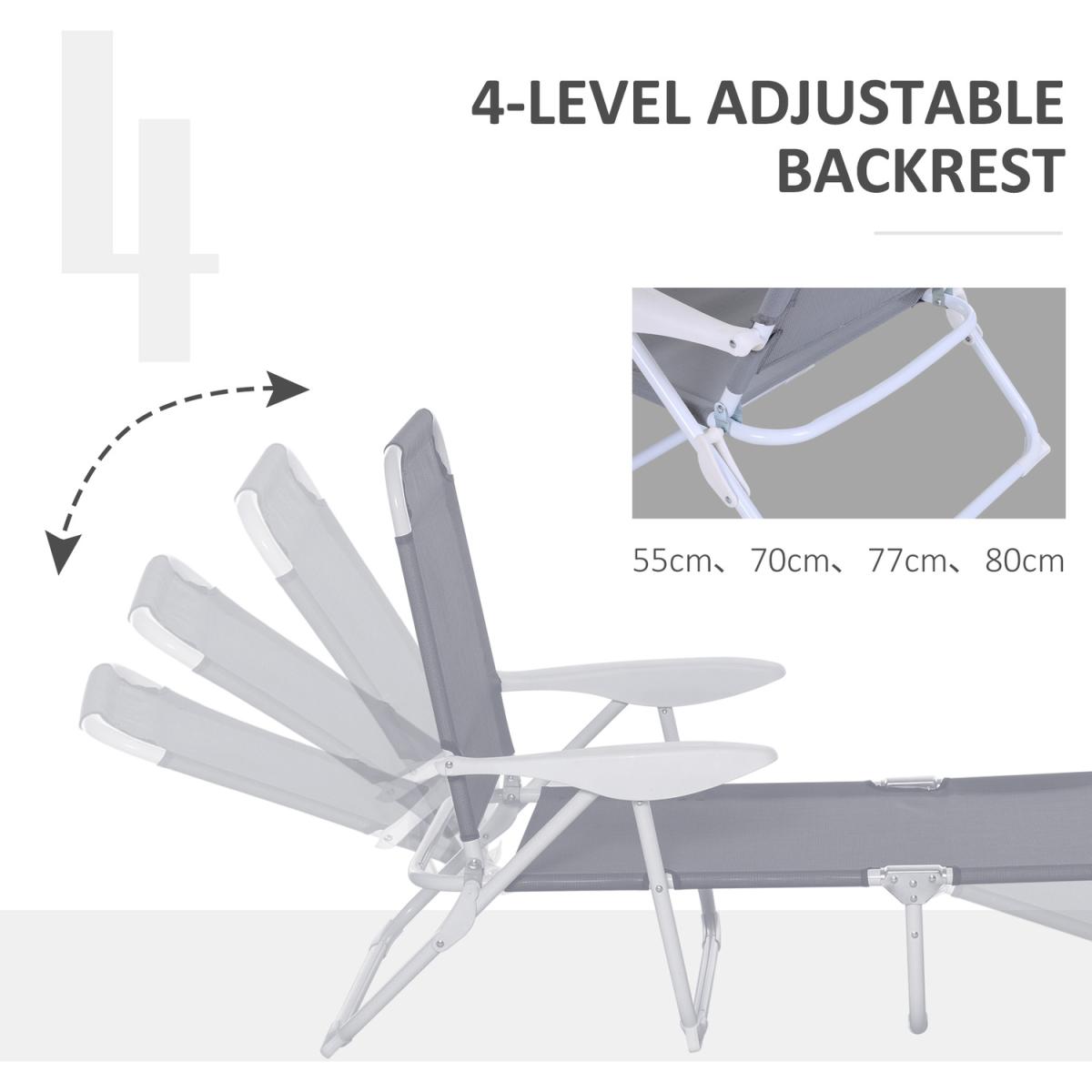 Our new foldable lounge chair is built strong, built comfortable, and built to last! This foldable sun lounger is great for all types of outdoor and indoor use. The 4-level adjustable backrest helps you find the most comfortable positions. The breathable and comfortable fabric will keep you cool. A great addition for your patio, garden, terrace, and more.