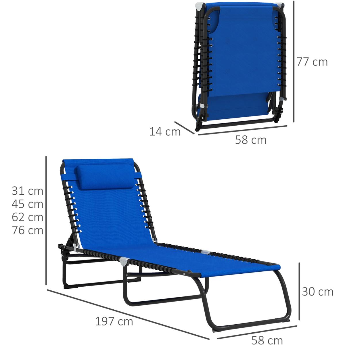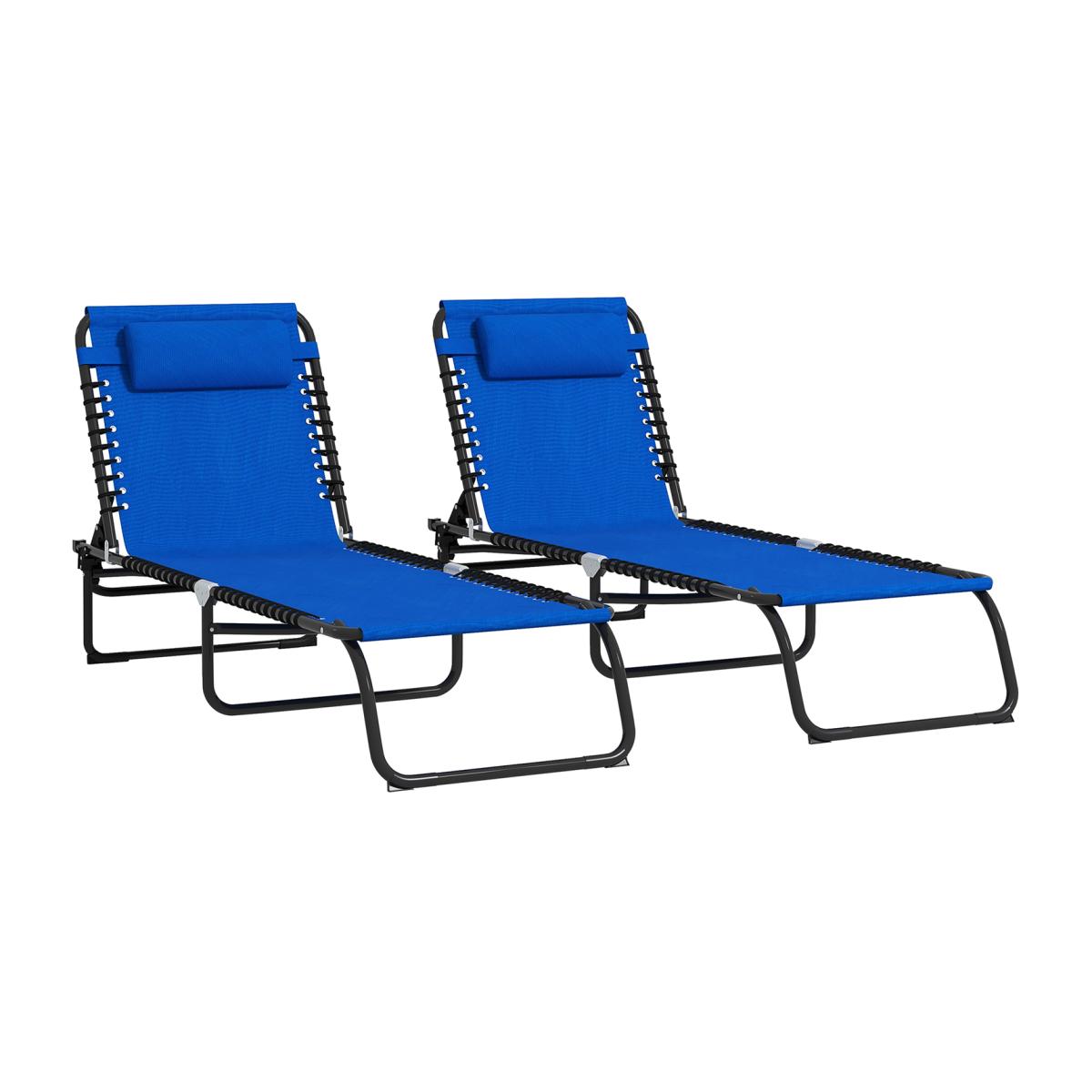 Outsunny set of two 4-position folding lounger is an ideal choice for you when at the beach, on the patio, near the swimming pool or at the camping ground. You can sit up, recline or lay down with 4 different reclining positions. A comfortable seat with a sturdy frame and its ability to fold up into a small size which is easy to transport, you can toss this in your trunk and have a comfy place to rest anywhere.