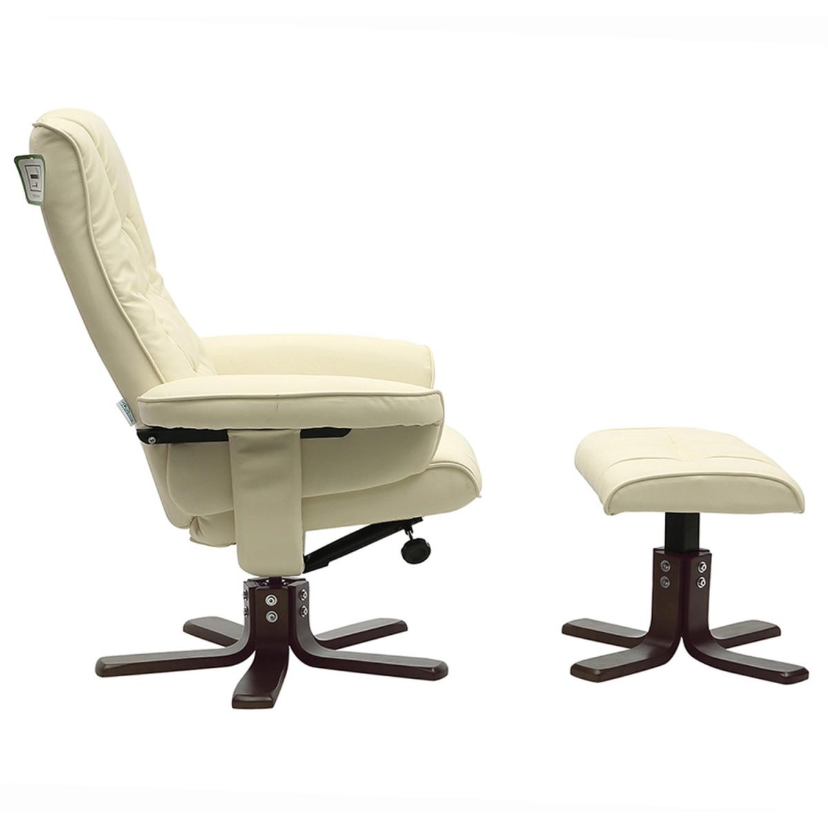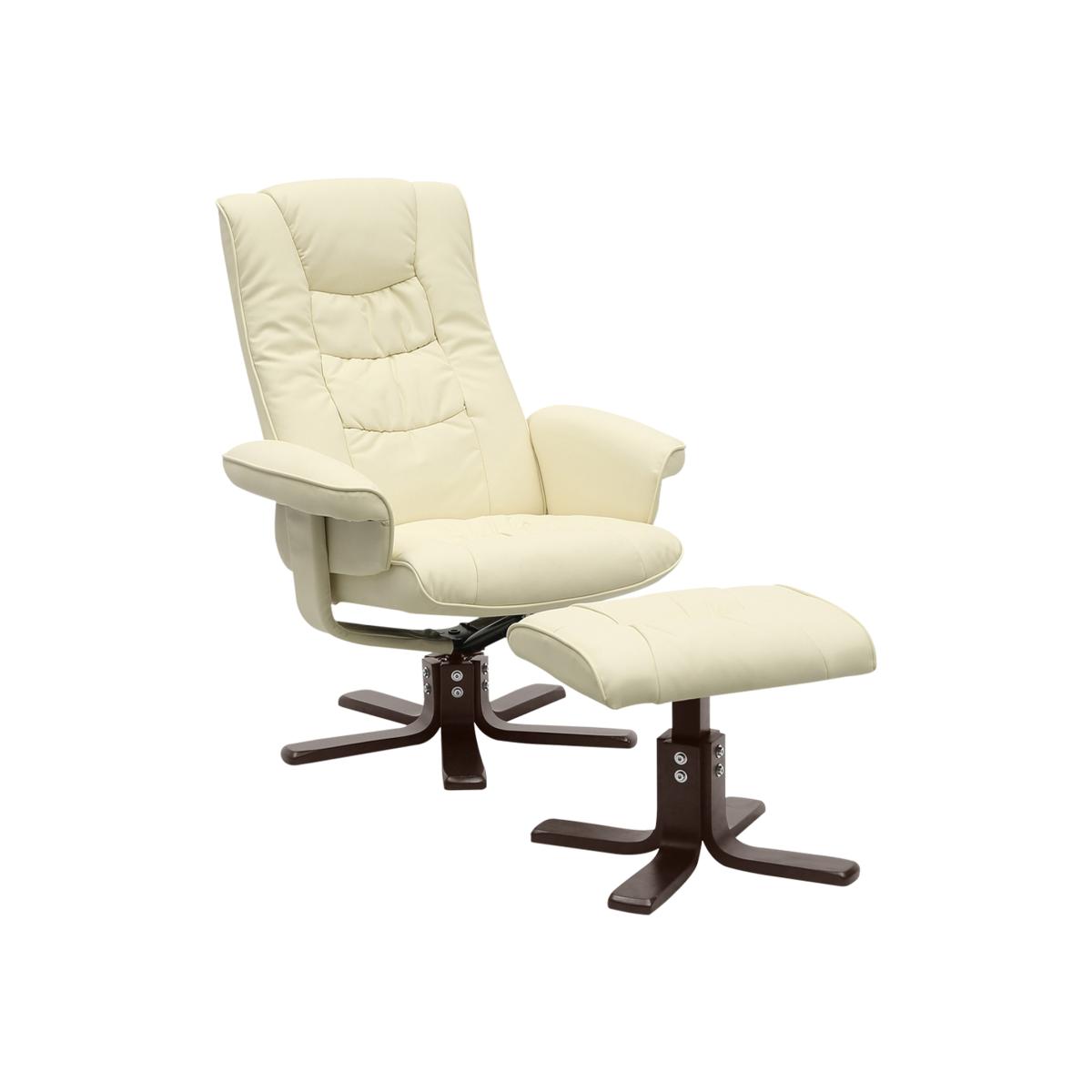 This Reclining swivel chair ranks high in both looks and functionality. The seat has a modern design with curved and high back, which is ergonomic and enough to provide comfort and support for your back, allowing you to better cope with the pressure of increased work intensity. Reclining swivel chair and stool are upholstered in a soft touch leather with a walnut colour laminated base, which makes sure the durability and stability for long time use. It's surely a comfortable addition to your living room, bedroom or office. Easy to Assemble - Simply fix the legs to the chair in a few easy steps.