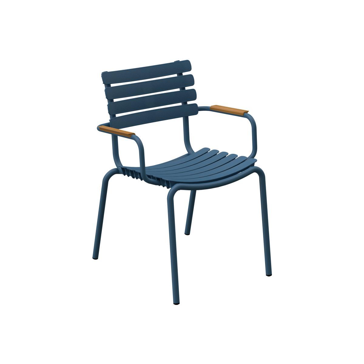 Highly ecological, the ReCLIP S armchair proves it’s possible to give waste a second life and new value, and use it to create a beautiful new, useful and durable object. This armchair is made from recycled plastic slats, made from household (post-consumer) waste collected in Denmark. The plastic slats are produced in Denmark using plastic household waste reuse technology also developed in Denmark. The recycled plastic slats are clipped onto a powder-coated aluminium structure with anti-corrosion treatment. The ReCLIP S collection stands out for its great modularity: the plastic slats that form the seats are removable and interchangeable. They clip on and off in the blink of an eye to the metal structure. So you can mix the colours of several seats to create an ultra-personalised style! The natural bamboo armrests add a natural, warm touch. With the ReCLIP S armchair, Danish designer Henrik Pedersen reinterprets traditional outdoor furniture made of plastic slats. His collection is elegant, robust and fun all at the same time. Make no mistake, plastic doesn’t necessarily mean discomfort. The slightly curved shape of the slats guarantees excellent comfort.