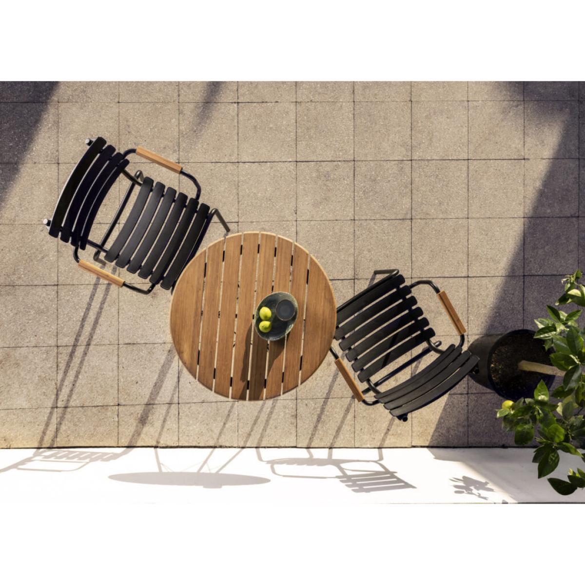 Highly ecological, the ReCLIP S armchair proves it’s possible to give waste a second life and new value, and use it to create a beautiful new, useful and durable object. This armchair is made from recycled plastic slats, made from household (post-consumer) waste collected in Denmark. The plastic slats are produced in Denmark using plastic household waste reuse technology also developed in Denmark. The recycled plastic slats are clipped onto a powder-coated aluminium structure with anti-corrosion treatment. The ReCLIP S collection stands out for its great modularity: the plastic slats that form the seats are removable and interchangeable. They clip on and off in the blink of an eye to the metal structure. So you can mix the colours of several seats to create an ultra-personalised style! The natural bamboo armrests add a natural, warm touch. With the ReCLIP S armchair, Danish designer Henrik Pedersen reinterprets traditional outdoor furniture made of plastic slats. His collection is elegant, robust and fun all at the same time. Make no mistake, plastic doesn’t necessarily mean discomfort. The slightly curved shape of the slats guarantees excellent comfort.