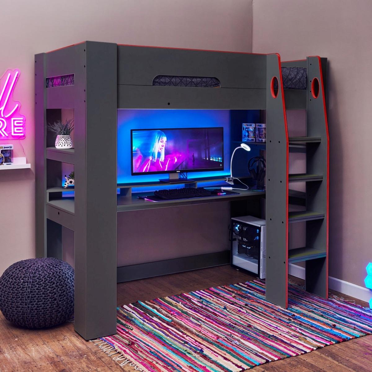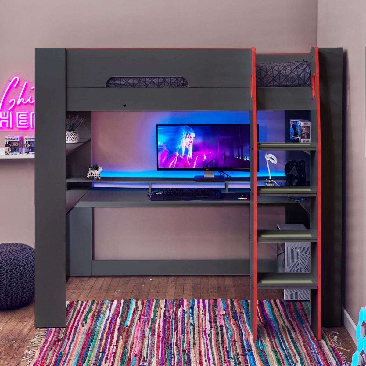 The Recoil Power Napper Gaming Highsleeper is the ultimate haven for aspiring gamers. It elevates your gaming setup to new heights with its sleek design and striking red trim, making it a standout piece in any gaming enthusiast's bedroom. Designed with precision and style, this high-performing setup ensures you never miss a beat during your epic quests or streaming sessions.
