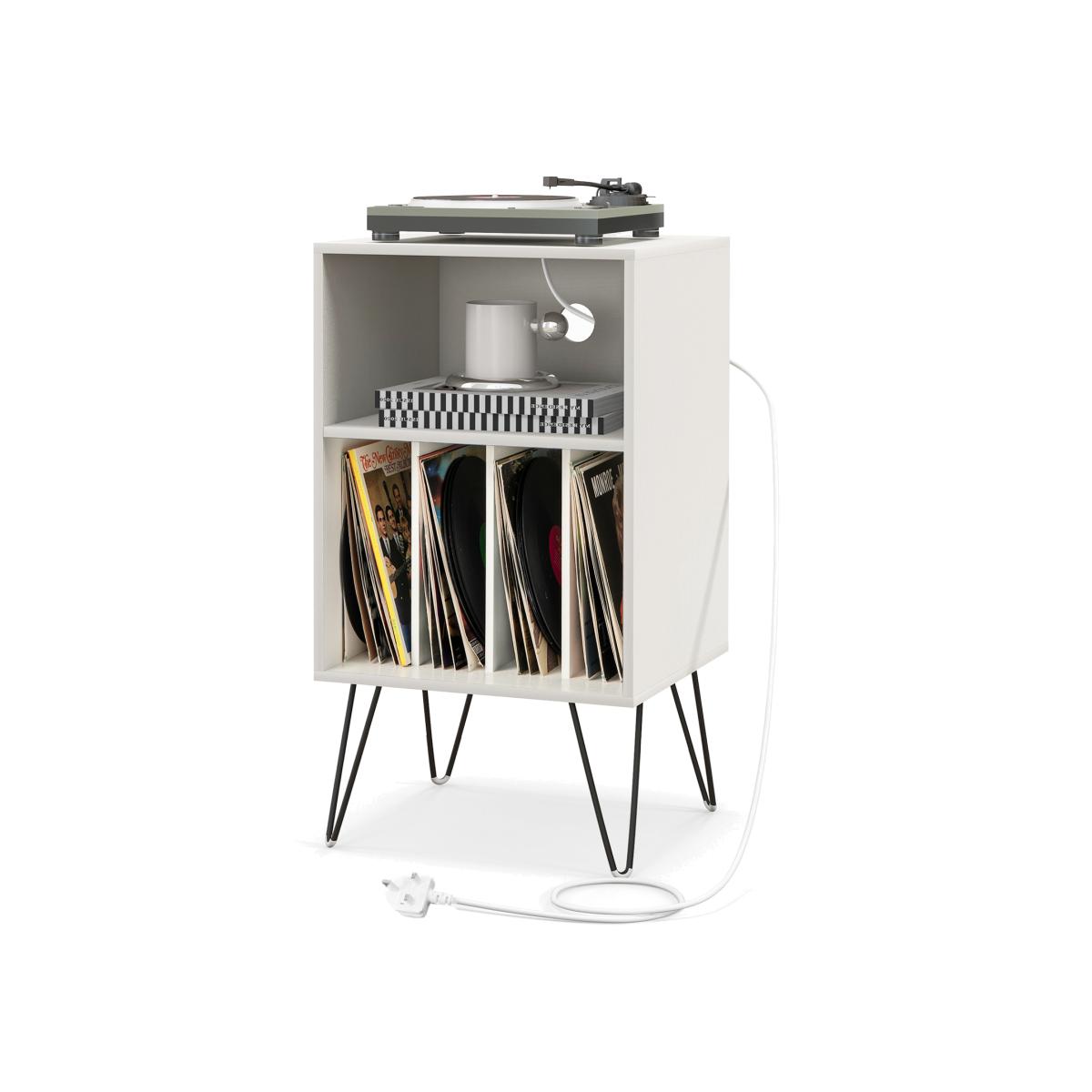 Record Player Stand with Charging Station - White