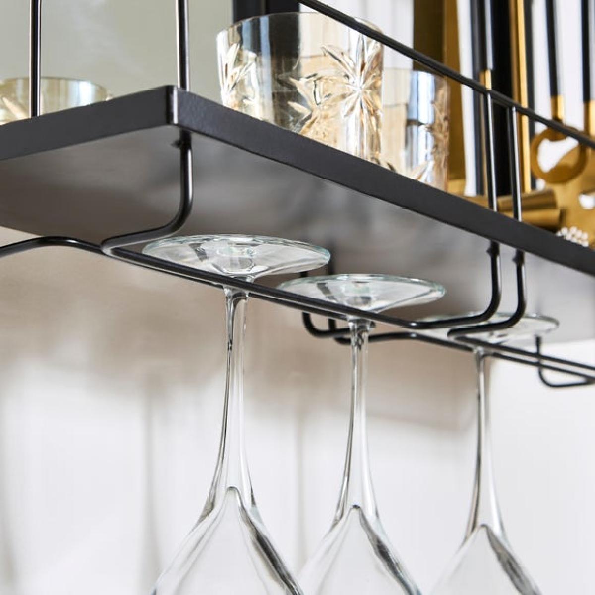 This bar shelf offers a sleek, modern look that works particularly well in contemporary or minimalist interiors. I love the combination of the black frame with the mirror, which not only adds visual interest but also helps to reflect light, making spaces feel brighter and more expansive. It’s ideal for creating a stylish beverage station or displaying glassware and bottles in a way that feels curated yet practical. For styling tips, try pairing it with clear or coloured glassware, a few decorative bottles, or even some understated greenery to soften the look. Keep the shelves organised but layered for an effortlessly chic vibe, and utilise the mirror as an eye-catching focal point that amplifies the room’s light and character.
