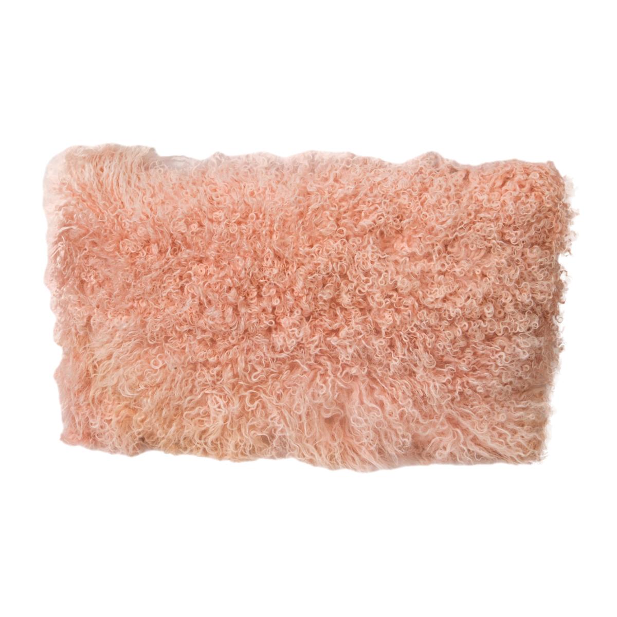 Native Natural source high quality Tibetan Sheepskin for their curly cushions, available in two sizes and several shades. This pink colour is subtle and soft.
