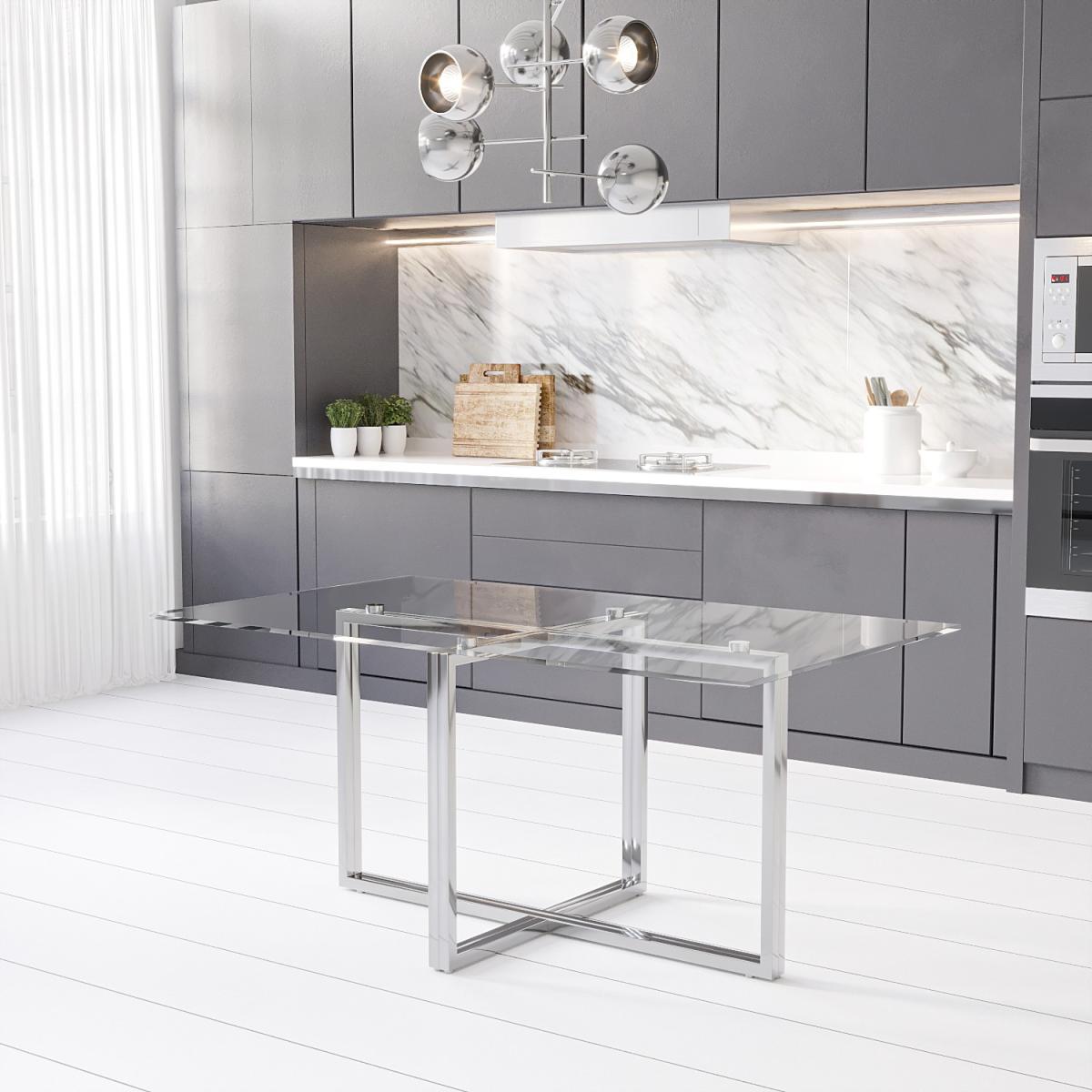 Features we love Modern dining table ideal for any dining space Elegant silver mirrored cross steel legs. Clear round tempered glass tabletop. Comfortably seats up to four people around the table Pair with any of our dining chairs to complete the look All about me. Make entertaining for guests a stylish affair with this elegant dining table. Its understated yet chic design means you can also mix and match with any of our dining chairs to complete the look you desire. There’s little assembly too with only the base to attach. Need to know. Dimensions. W160 x D90 x H76 cm Seats. 6 Shape. Rectangle Colour. Silver and transparent Finish. Tempered glass top and silver chromed (legs) Material. Glass and stainless-steel For use. Indoors Product weight. 33kg Assembly required. Yes attach the legset.