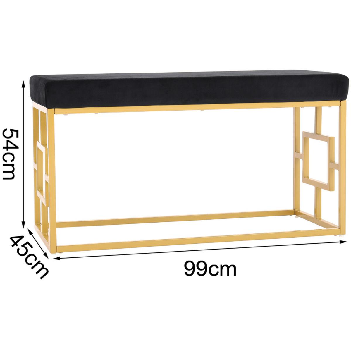 I love this bench for its sleek, modern look and versatile appeal. The black cushion topped with its stylish gold frame makes it ideal for both contemporary and more glam interiors. It works well in entryways as a practical seat with added visual interest, or as a statement piece at the foot of a bed for extra seating and style. To style it effectively, consider pairing it with textured cushions or throws to soften the look, or keep it minimalist for a chic, polished aesthetic. Its sturdy design also means it’s practical for everyday use, making it a smart addition for spaces where style and function meet.