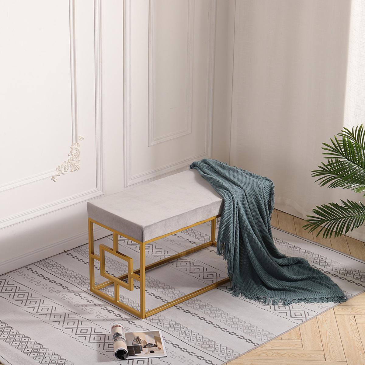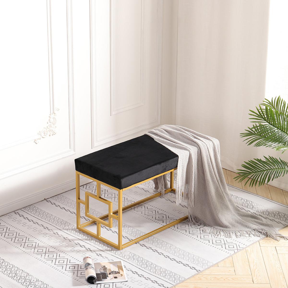 Our ottoman comes in a comfortable fabric, seat with soft sponge infilling and thick padded cushion offering added comfort. The fabric is made of velvet, soft and comfortable to touch, thick and durable, healthy and environmentally friendly. The Gold and stable metal foot will allow you and your family to sit up there safely.