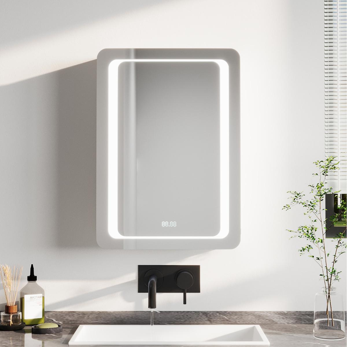 Elevate your daily routine with this multifunctional wall mirror cabinet, designed to bring organization and convenience into your life. With ample storage space, it keeps your essentials neatly arranged and protected from external elements. The standout feature is the built-in energy-efficient LED lighting, which brightens your reflection and simplifies your makeup and styling process. An electronic clock beneath the mirror ensures you're always on time for important appointments. Its sleek, modern design complements any bathroom decoration, making it a decision you'll always appreciate.