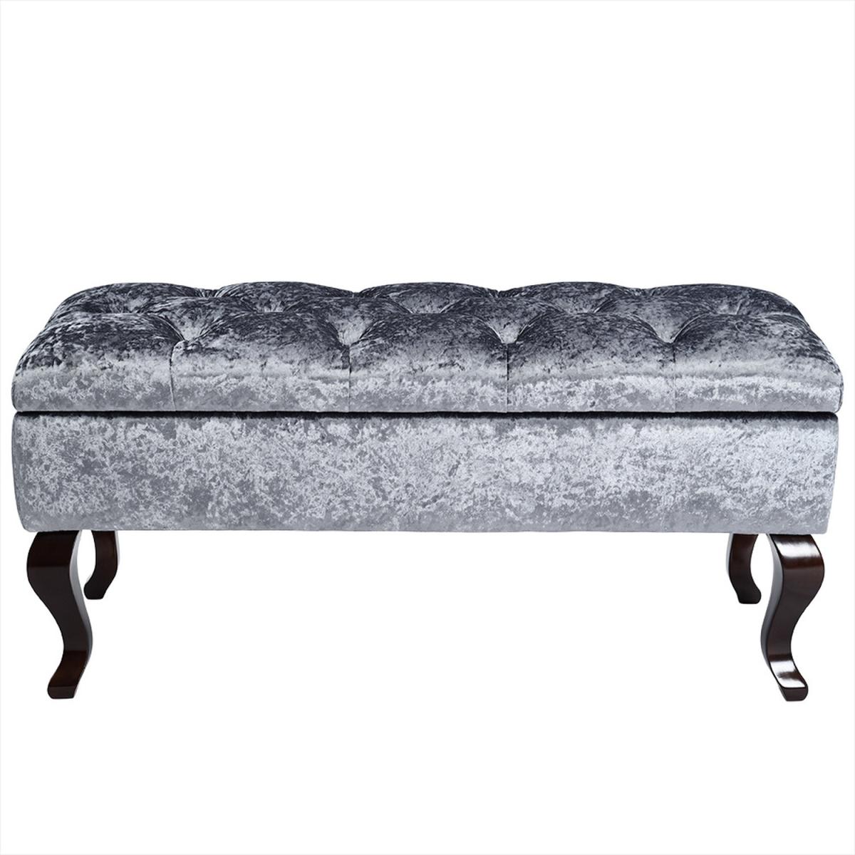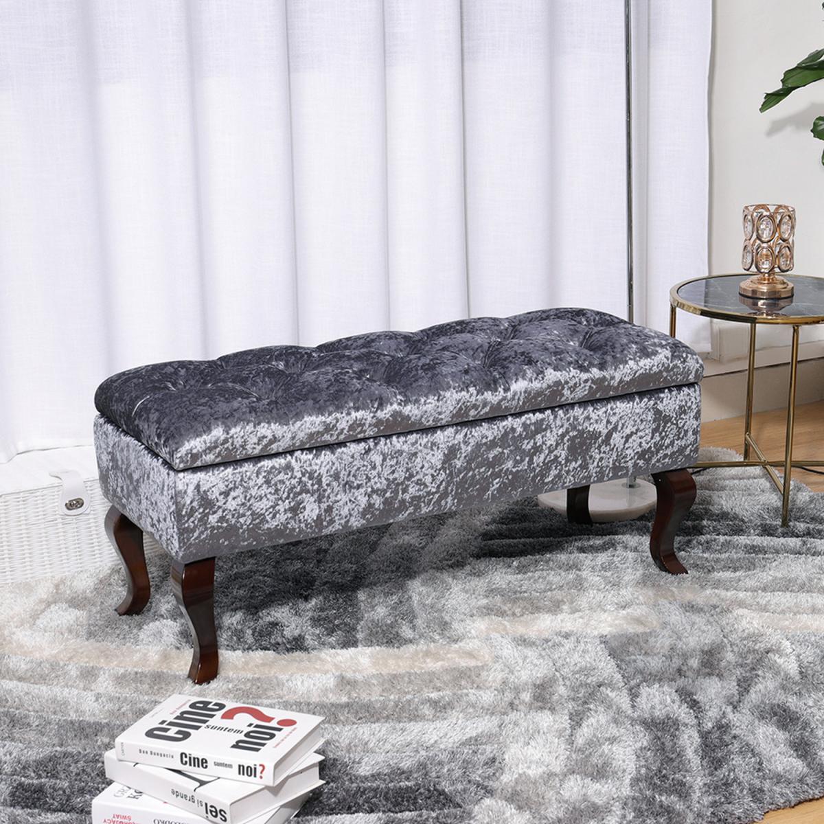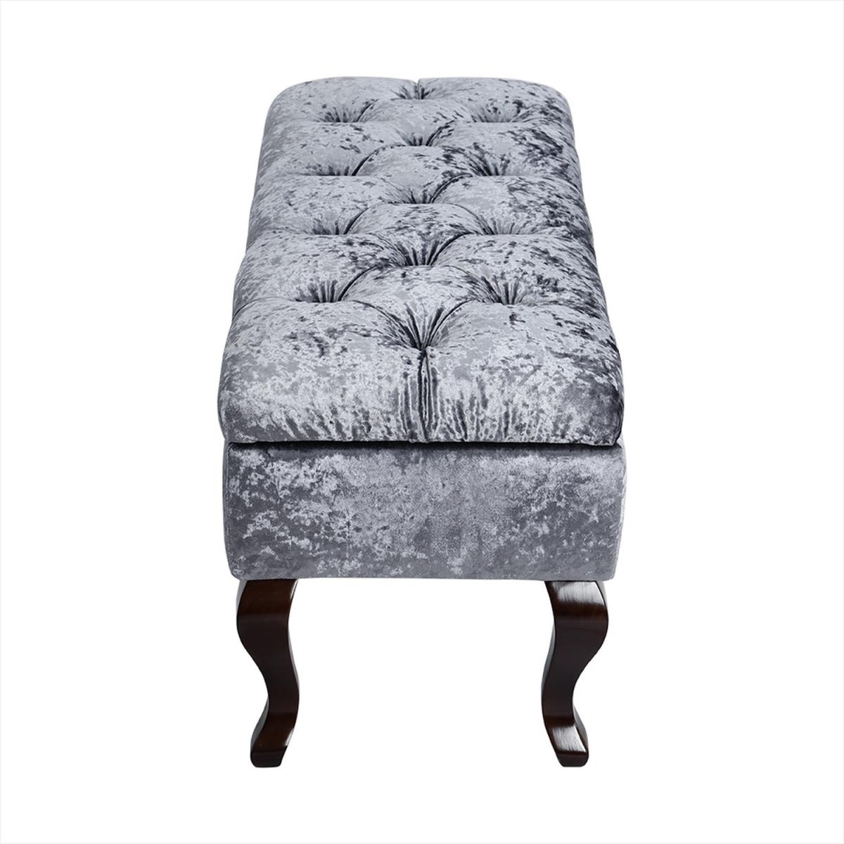 Enjoy the luxury and sophistication with the beautiful ottoman bench. This piece is upholstered in plush tufted fabric and stands on unique rubber wooden legs that give this piece a modern twist. Whether placed in your living room, bedroom or office, this bench is great for extra seating, as a footstool, or as a coffee table.