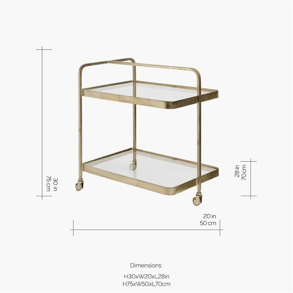 I love this trolley’s sleek yet practical design, making it a versatile addition to both modern and classic interiors. Its minimalist metal frame with a polished finish lends itself well to contemporary spaces, but it can also add a touch of glamour to vintage or eclectic rooms. Perfect for serving drinks in a dining area or as a stylish bar cart in a living room, I recommend styling it with a mix of glassware, decanters, and a few statement accessories to keep it looking fresh and inviting. Practical tips include using it as a mobile display for artful barware or plants, and layering with decorative trays or cloths to easily switch up the look depending on the occasion.
