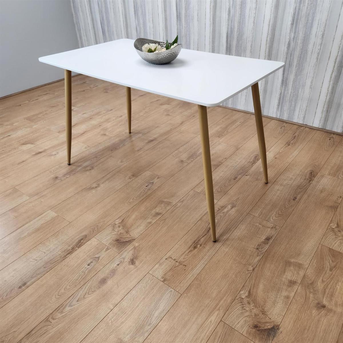 The dinner table is crafted with high-quality MDF, and a melamine laminated finish to ensure a durable, long-lasting tabletop. The table comes in a white shade with metal legs that showcase an oak-effect finish. The table dimension is H75 x L120 x W70 CMStraightforward assembly, supported by clear instructions for a hassle-free setupFEATURE. S Dining Table only. Comes with a sophisticated design. Crafted with durable, long-lasting material. High quality tabletop. Hassle-free setup with the flat-pack format and clear instructions. Table size H75 x L120 x W70 CM