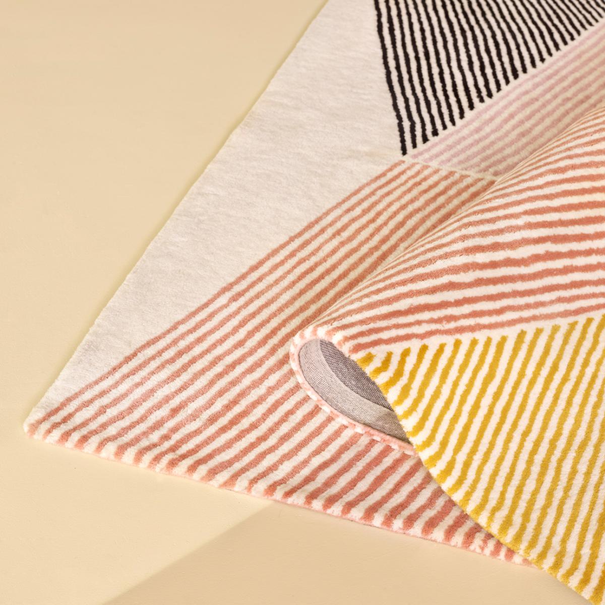 The Rectangles wool rug pink by the Swedish brand NJRD is a multi-coloured rug with two pink shades in focus. The wool rug is designed by the designer-duo Bernadotte & Kylberg and shows a clean geometric pattern made up of small distinct lines in different colours and directions. This high quality rug is made of 100% hand-tufted New Zealand wool, creating a wonderful soft rug to walk on.