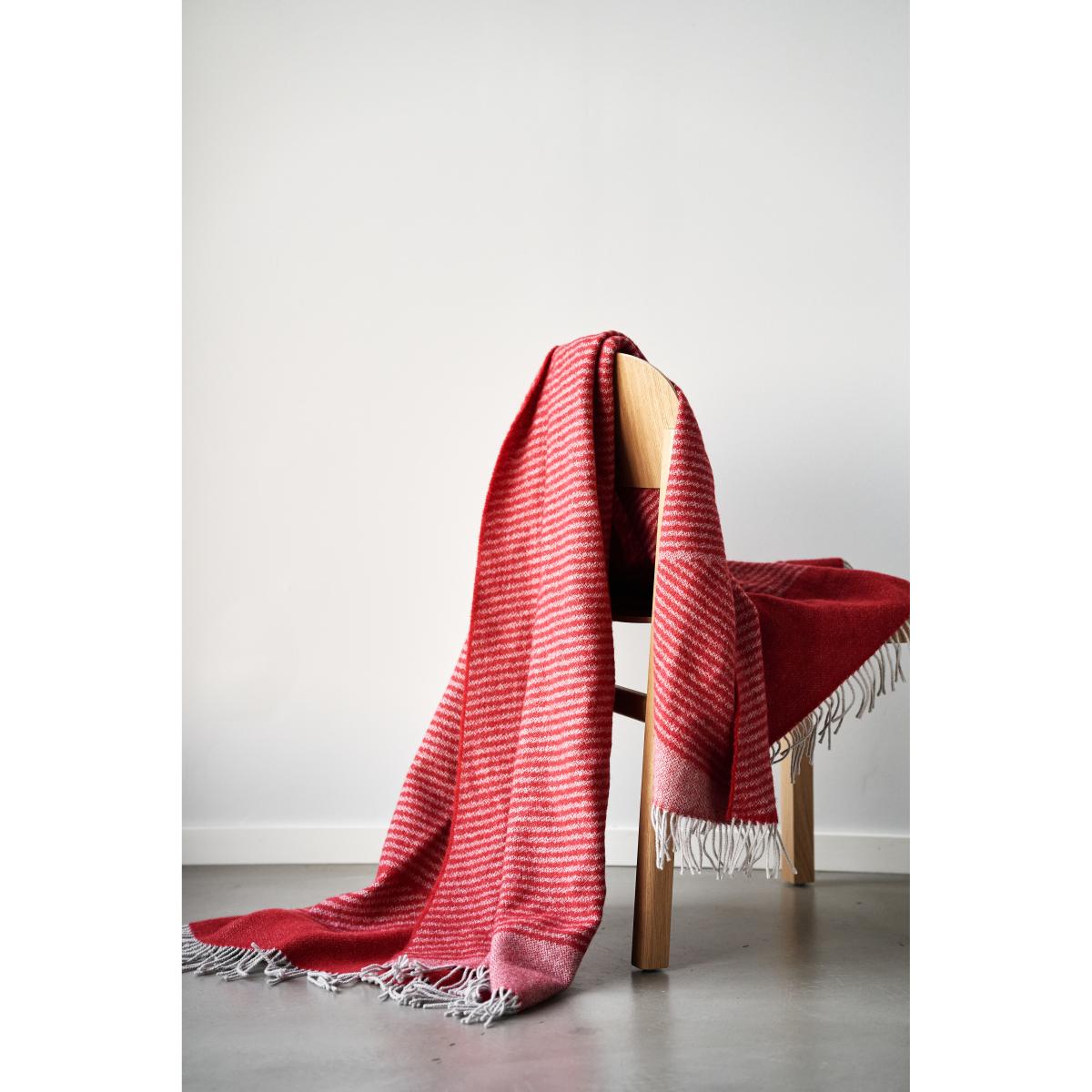 This cosy red wool throw is a versatile addition to many interiors, especially those with a modern or contemporary feel. I love its bold colour for injecting warmth and energy into neutral or minimal schemes, but it also pairs well with deep blues, greys, or earthy tones. It works beautifully draped over a sofa or bed for an effortless pop of colour, or folded neatly at the foot of a bed for a tidy, inviting look. For practical styling tips, consider layering it with textured cushions or mixing it with other throws in complementary colours or fabrics to add depth. Its size makes it ideal for pulling over a sofa or armchair during colder months, making it as functional as it is stylish.