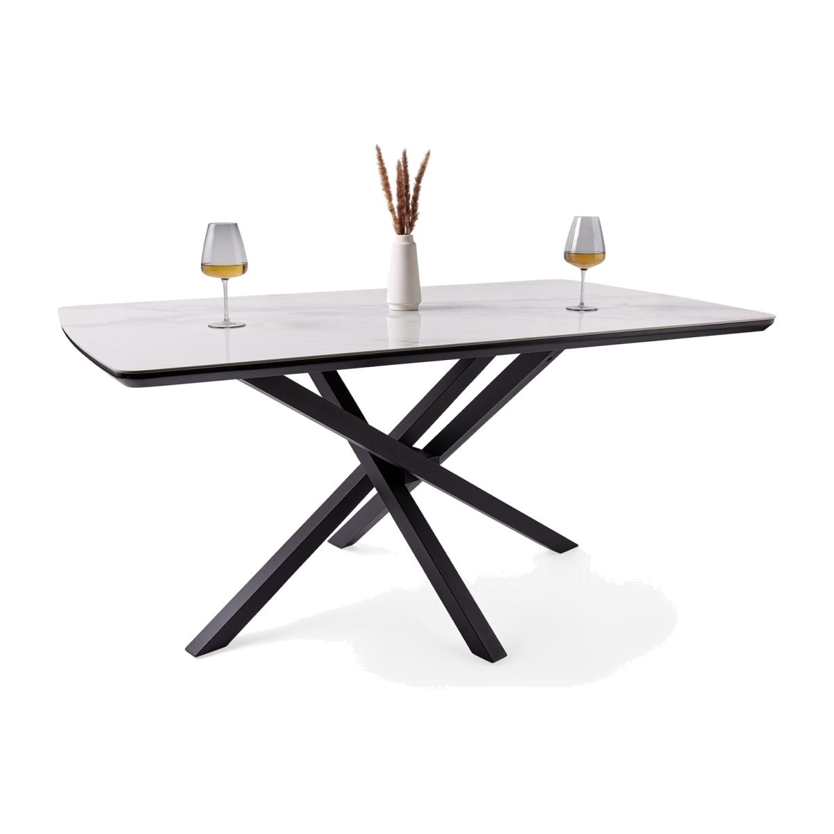 Stunning in its simplicity, the Spinningfield dining table creates a chic centrepiece in any kitchen or dining room. Featuring an opulent marble effect top set on an eye-catching cross leg base, add a high-end industrial feel to your dining space: the perfect finishing touch to the modern home. Bringing form and function, the spacious tabletop is set on powder coated adjustable legs, ensuring sturdy dinner party use in any home. As well as creating a contemporary style statement, the black spider-style design maximises stability and leg room. The 50kg capacity makes it the perfect table for dining and entertaining, boasting savvy style. Add a touch of luxe to mundane weeknight meals, large family gatherings, and lavish dinner parties. Please note: the marble effect may differ slightly. This large item is in multiple packages which may arrive separately. Check courier tracking for full details.