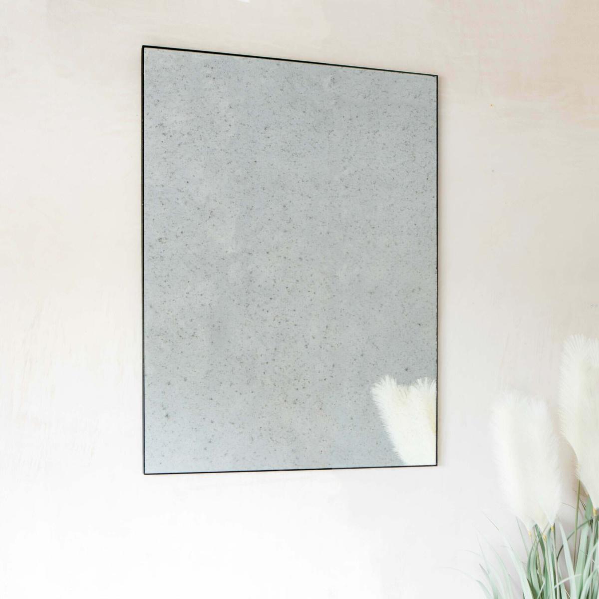 Minimalism at its finest, this chic mirror features a slim antique finished frame with sleek lines.