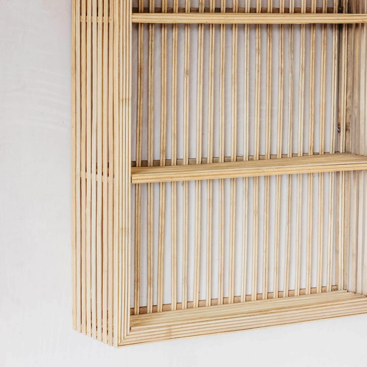 Introduce a Scandi touch to your interior with our natural bamboo shelving unit. The angular shelves are perfect for housing small plants, photo frames and accessories.