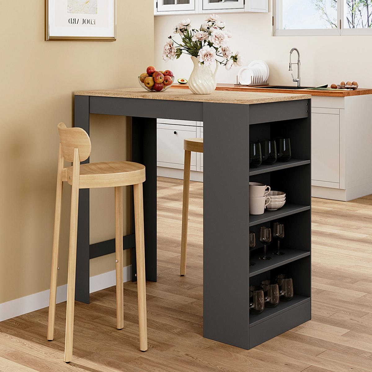 Enjoy your leisure time with the Bar Table. Compact yet spacious, it's ideal as a dining spot, standing desk, or display table. With a robust load-bearing capacity and ample tabletop space, it also features 4-tier open shelves for storing wine bottles and glasses. This multifunctional table enhances your living space, whether for meals or showcasing decor.