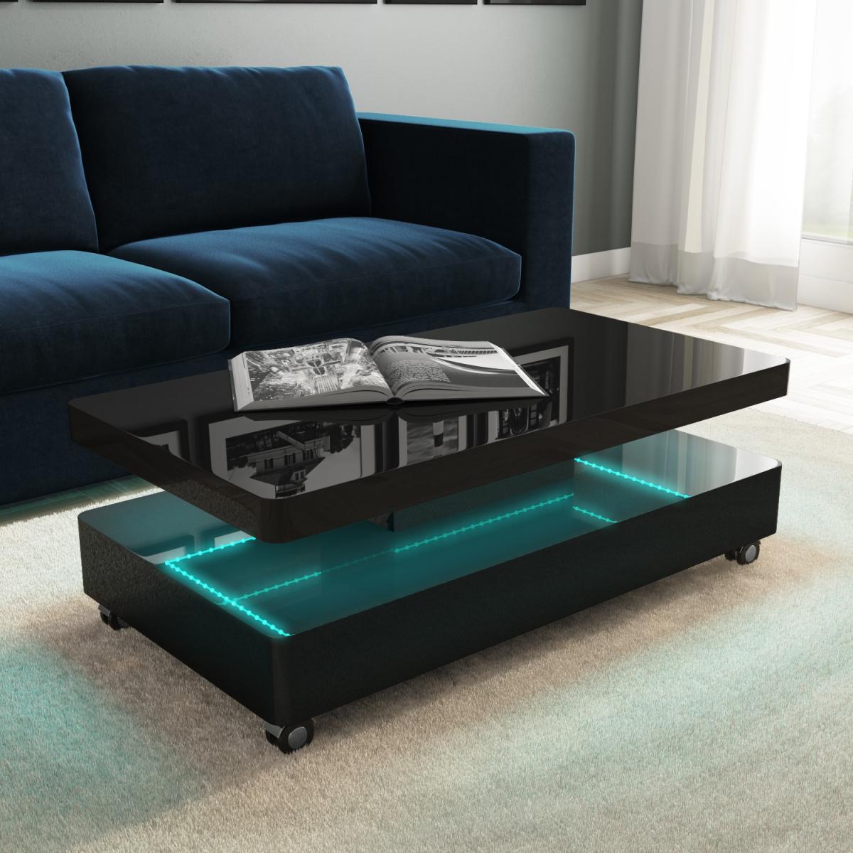 Create an ultra-modern living space with our Tiffany gloss coffee table in black. The rectangular design with smooth curved edges provides plenty of surface space for your morning read and a cup of coffee. The contemporary shape of the table will sit beautifully central in your living space, creating a unique focal point. Constructed from a strong wood combination with a coating of high gloss lacquer in deep black, adding style and durability. The table has hidden metal castors for smooth movement, enabling you to easily re-position your coffee table whenever you need to. Thanks to the sleek finish the table is super easy to wipe clean. Use a touch of polish every so often to refresh the table's natural shine.