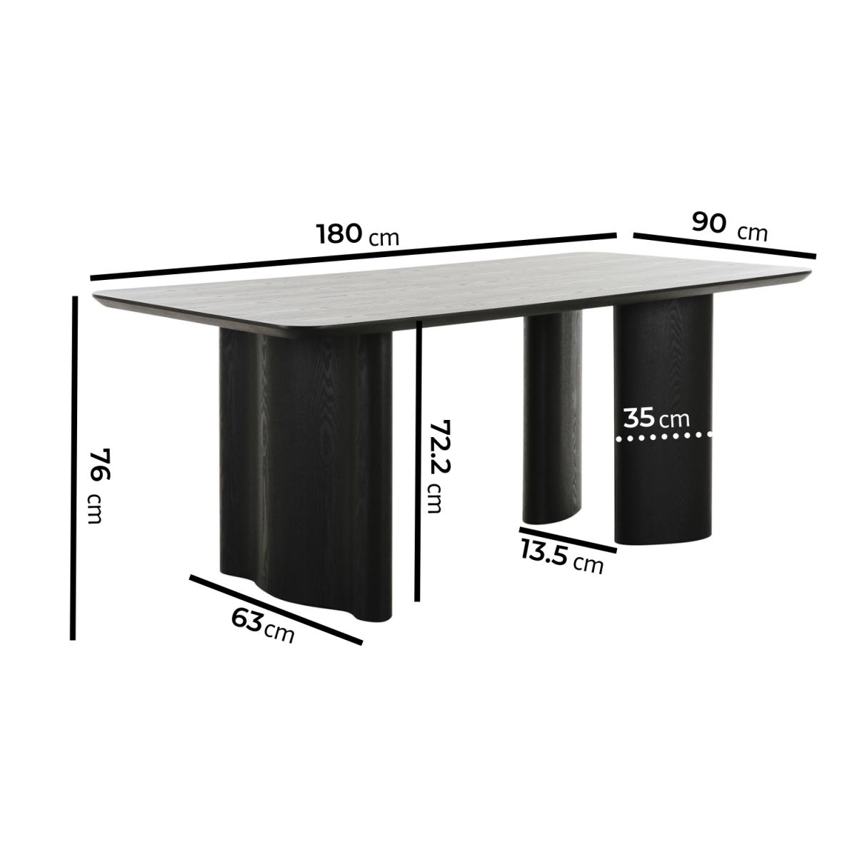 The robust leg design creates a powerful architectural focal point, adding dynamic movement and contemporary edge to any dining space. The large rectangular surface comfortably seats six, offering plenty of room for family meals and entertaining, while the sleek black finish adds sophistication. The soft to touch chenille fabric in beige pairs well with any interior style, offering a sophisticated and inviting look. The black metal legs provide durability, stability, and a striking contrast against the beige upholstery. The combination of chunky legs and a sleek tabletop make it a statement piece that fits effortlessly in modern, urban, or electric homes. Elevate your dining area with the Troy Black Wood Dining Table. Featuring strong, sculptural legs and a sleek black finish, this 4-6 seater table offers plenty of room for meals, celebrations, and everything in between. Paired with our Colbie dining chairs, upholstered in soft, neutral beige chenille fabric and finished with sleek black metal legs, they bring timeless elegance and comfort to your space. This dining set is perfect for everyday meals, dinner parties, or casual gatherings. Together, they form a thoughtfully designed set that enhances everyday living and makes a lasting impression in any modern home.