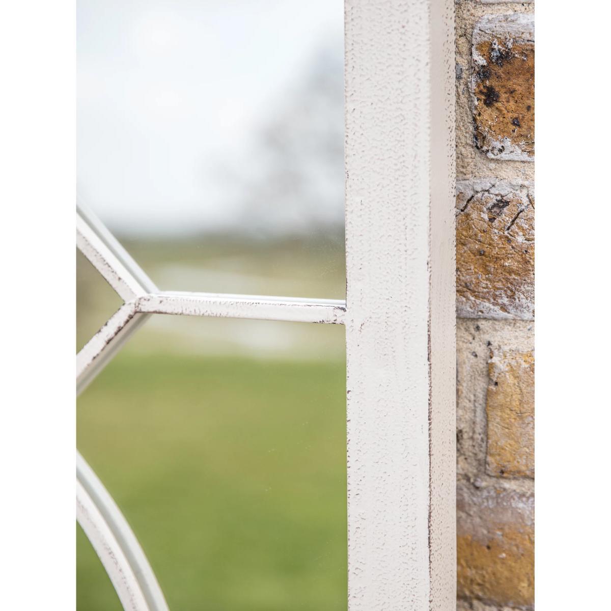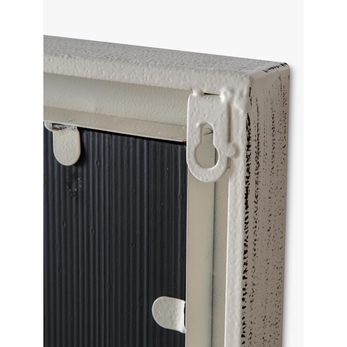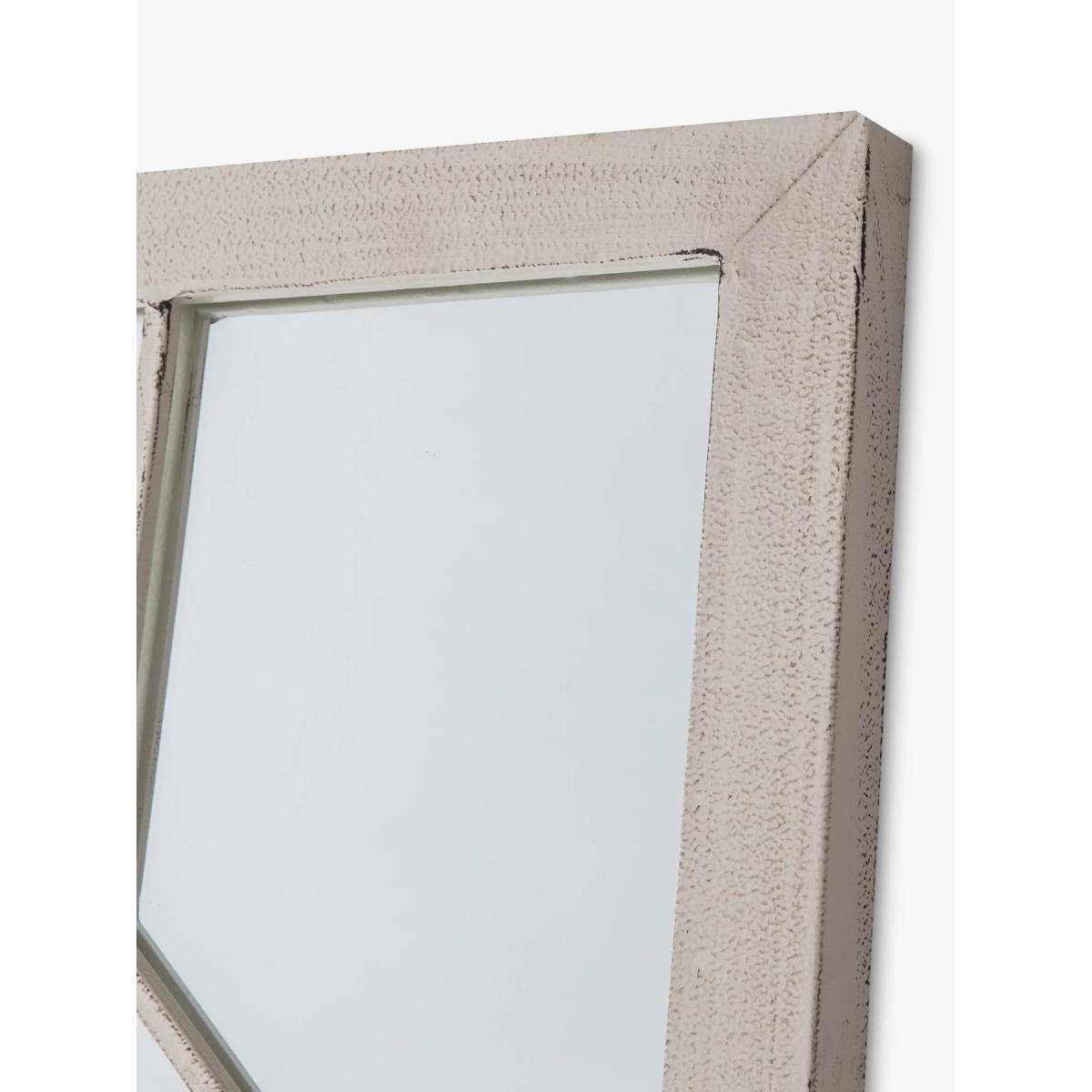 A window-style rectangular mirror with a decorative metal frame in a distressed finish. This design has a protective painted coating making it suitable for outdoors as well as indoors. It's ready to hang on your wall using the fittings on the back. Have you thought about wall hooks and fittings?
