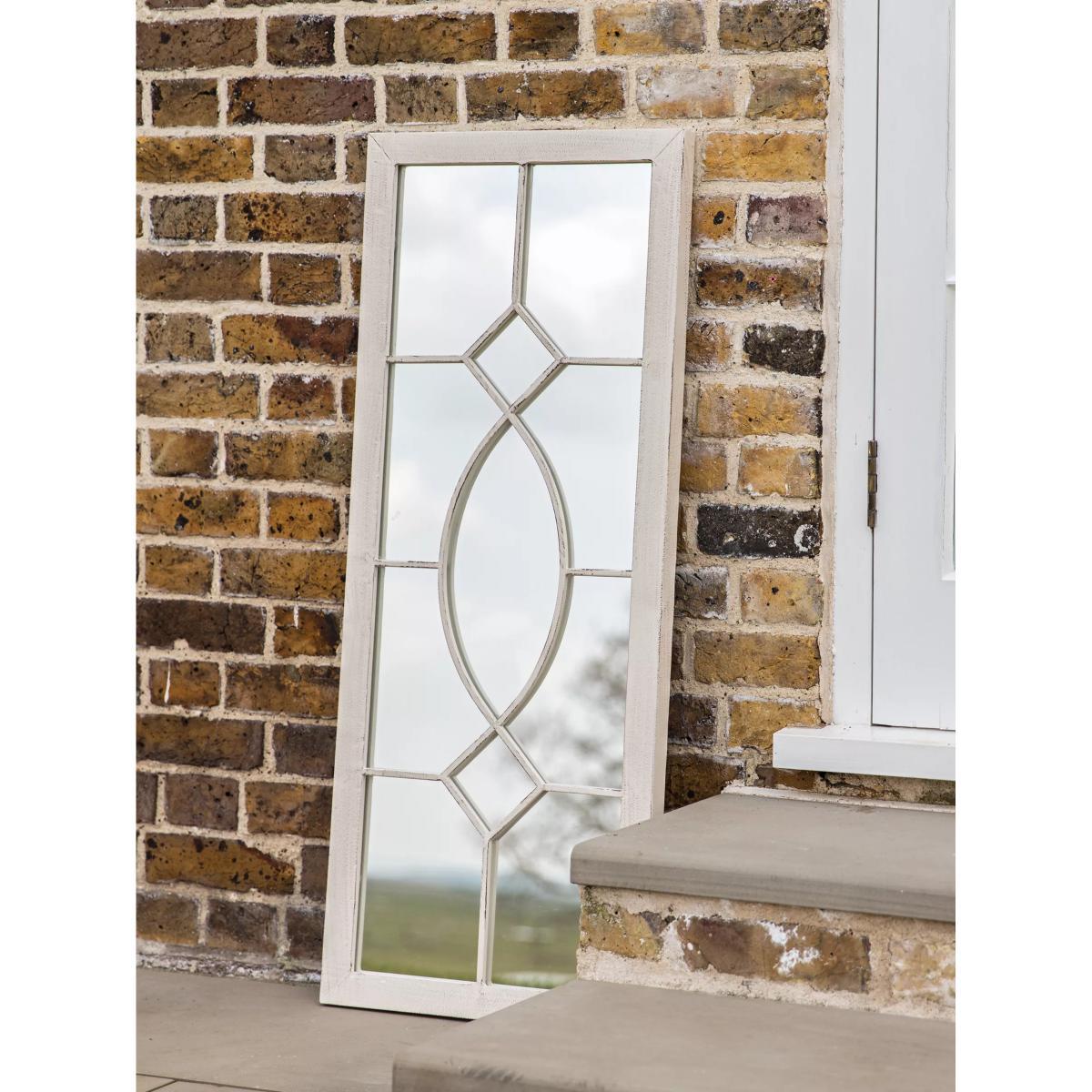 Rectangular Decorative Metal Frame Indoor/Outdoor Wall Mirror, 105 x 43cm, White