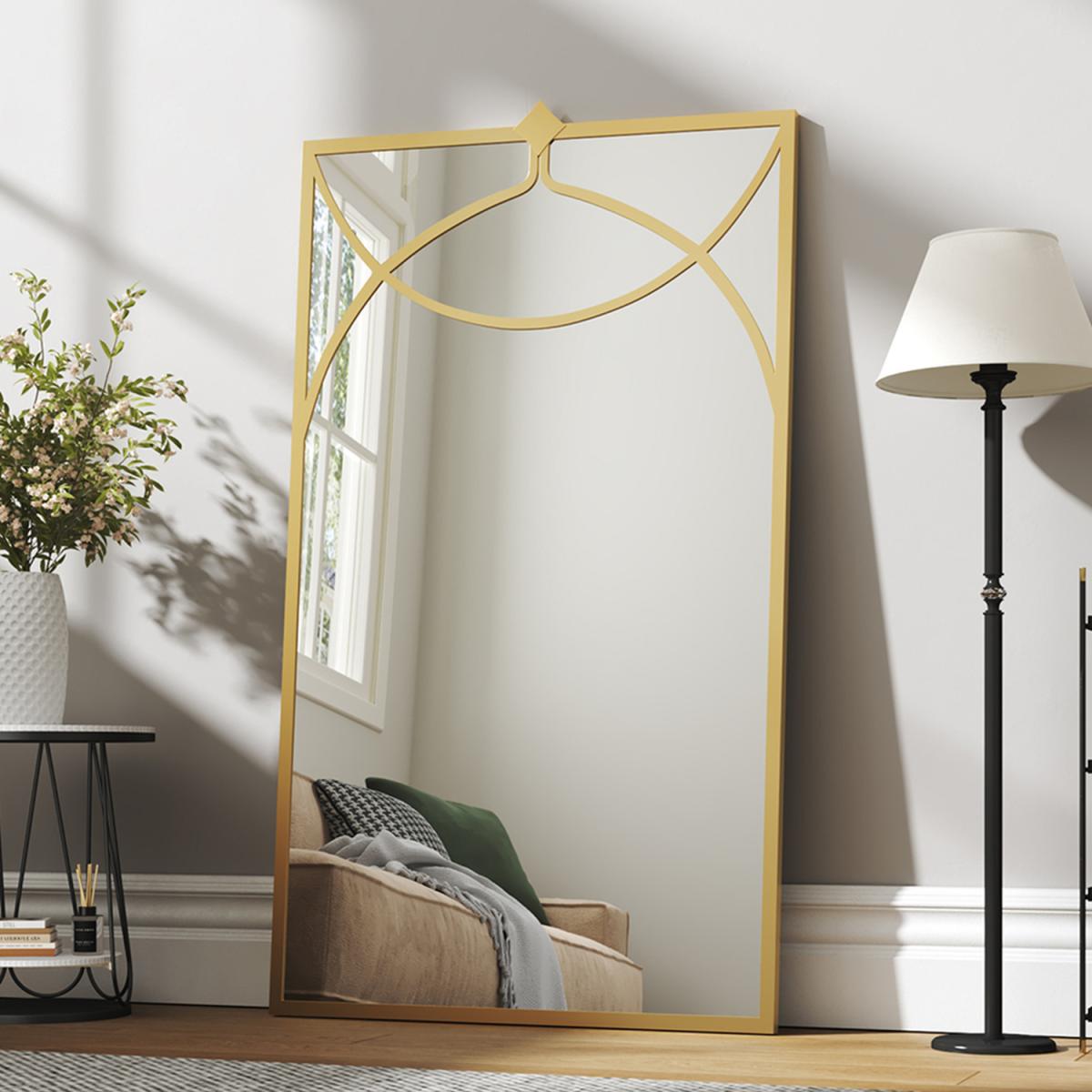 Add a touch of elegance to your home with this decorative mirror. Featuring a sleek metal frame in a beautiful gold finish, it showcases graceful curves that bring modern sophistication to any room. Crafted with high-quality, copper-free glass, this mirror offers crystal-clear reflections and lasting durability. Its reflective surface helps brighten and enhance your space, creating an inviting and luxurious atmosphere.