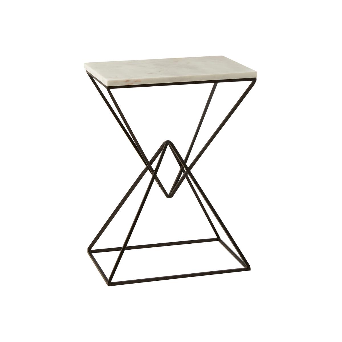 This side table features sleek and sturdy black finish iron lines which intersect each other to form an inverted prism design. The open, airy base supports a square-shaped cool white marble top that neatly sits on it. A contemporary blend of marble and metal gives this piece offers a sophisticated modern, geometric look. Product Dimensions: 26cmx36cmx55cm Please remember to measure your available space before ordering. Packaged Dimensions: 62cmx 49cmx 35cm Weight: 9.5kg. This product will be dispatched by one of our trusted suppliers. You’ll be contacted by their selected courier about your delivery.