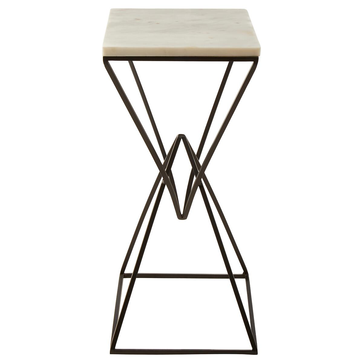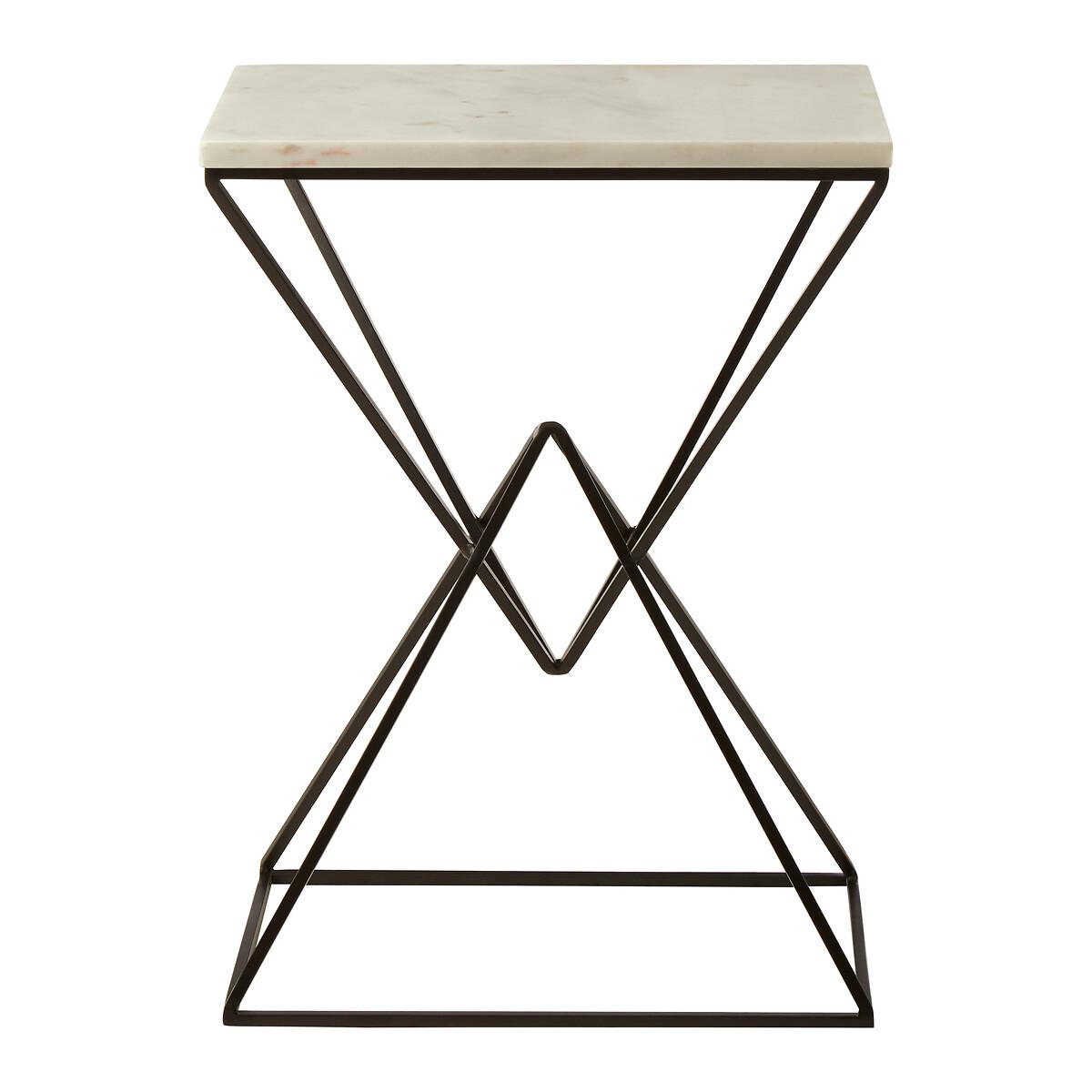 This side table features sleek and sturdy black finish iron lines which intersect each other to form an inverted prism design. The open, airy base supports a square-shaped cool white marble top that neatly sits on it. A contemporary blend of marble and metal gives this piece offers a sophisticated modern, geometric look. Product Dimensions: 26cmx36cmx55cm Please remember to measure your available space before ordering. Packaged Dimensions: 62cmx 49cmx 35cm Weight: 9.5kg. This product will be dispatched by one of our trusted suppliers. You’ll be contacted by their selected courier about your delivery.
