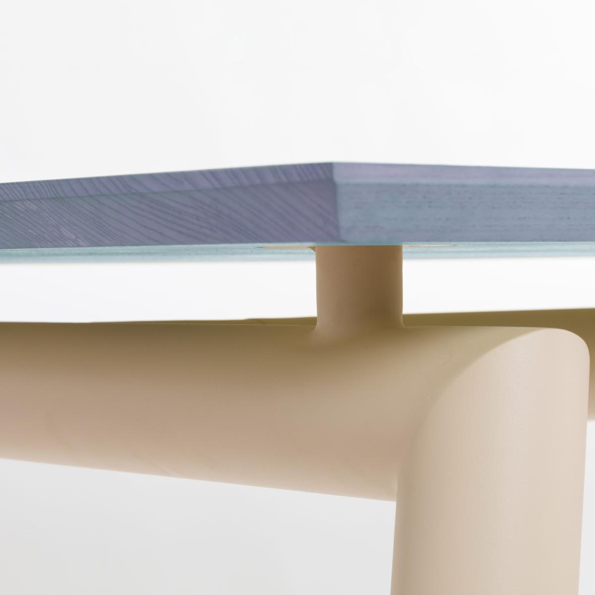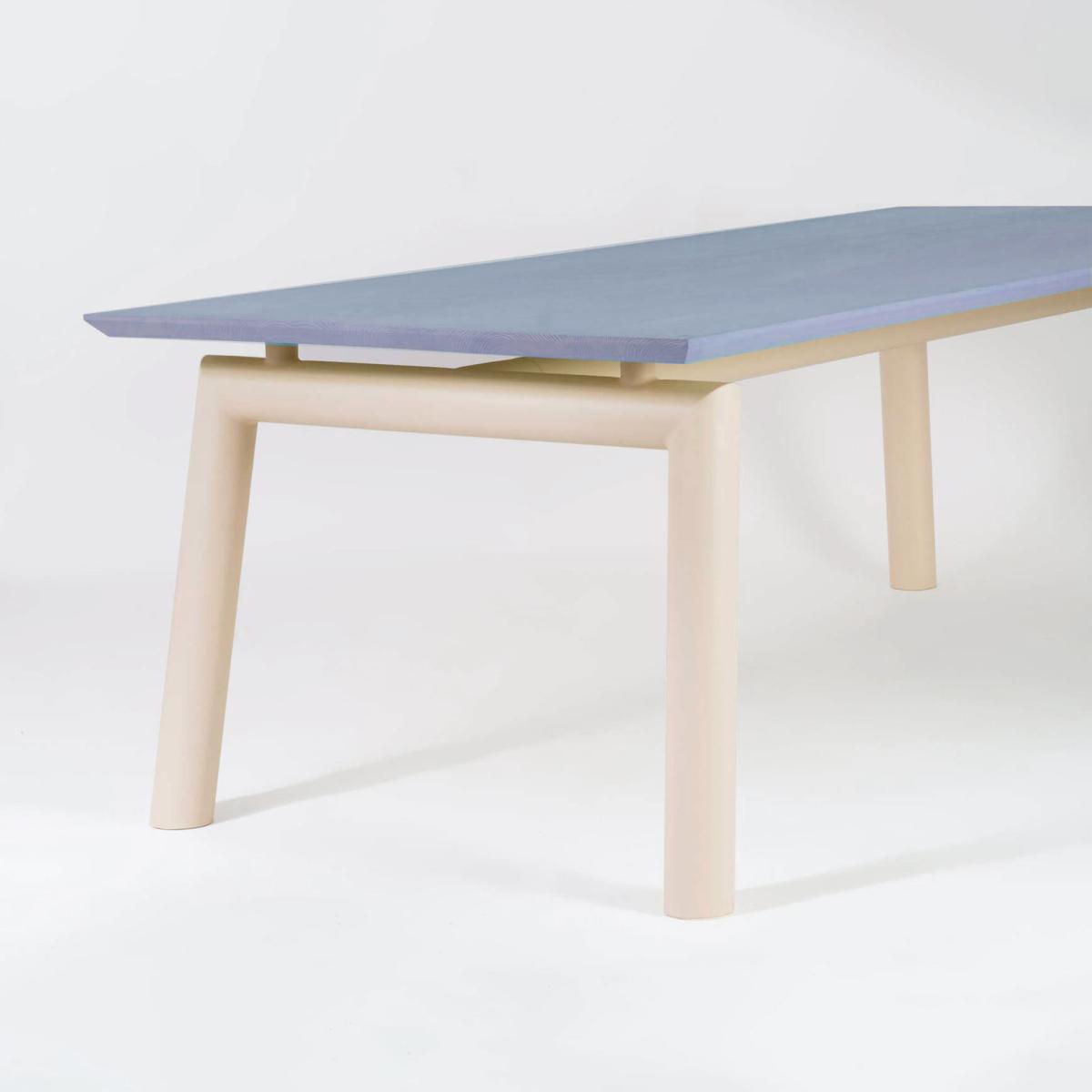 Avant-garde contemporary design... Founder of the 13. Desserts label, the young French designer Clément Rougelot created this modern, no-frills table, decorated with fresh, current colours. It’s made up of a lavender-tinted solid beech top which shows off the wood’s grain. The base is made of large lacquered steel tubes. The rigour of the base contrasts with the grain of the wood. The connection between the base and top is provided by aluminium pins which raise up the top. As such, the top seems to levitate above the tubular structure. The base is made of large lacquered metal tubes. The rigour of the base contrasts with the grain of the wood, the top seeming to levitate above its structure. Each Canebas table is manufactured and assembled by hand by artisans in France. French designer 13. Desserts approaches design from a radical perspective, seeking balance between artistic freedom, mass production and "collectability". Giving pride of place to experimentation, this emerging design label explores new production avenues combining industrial processes and artisanal know-how. Uninhibited by the codes and trends that govern the market, the young guard of French design expresses itself freely, offering a selection of radically unique pieces.