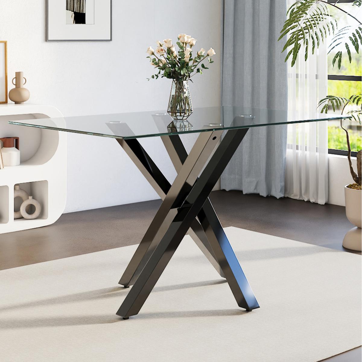 Rectangular Tempered Glass Coffee Table with Metal Tube Legs - Black