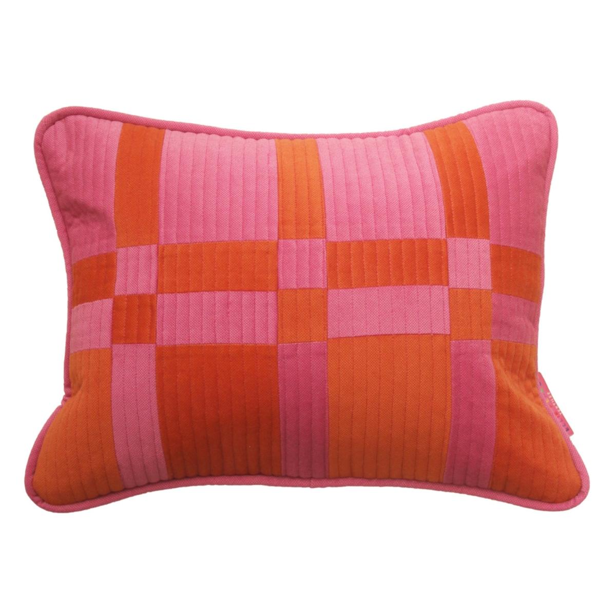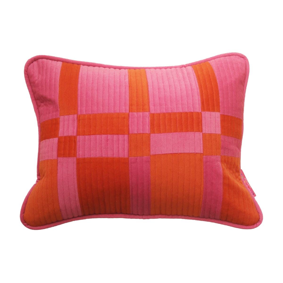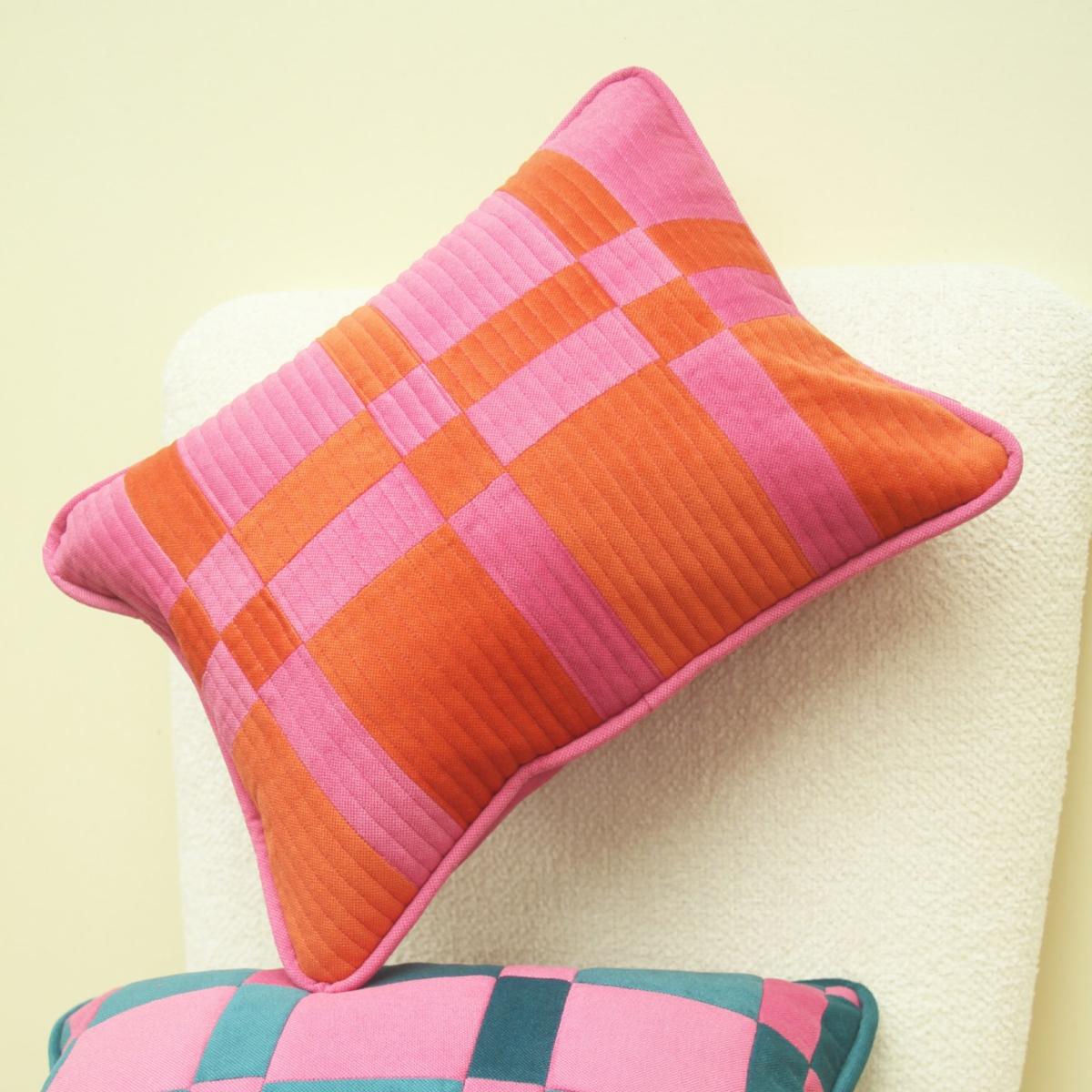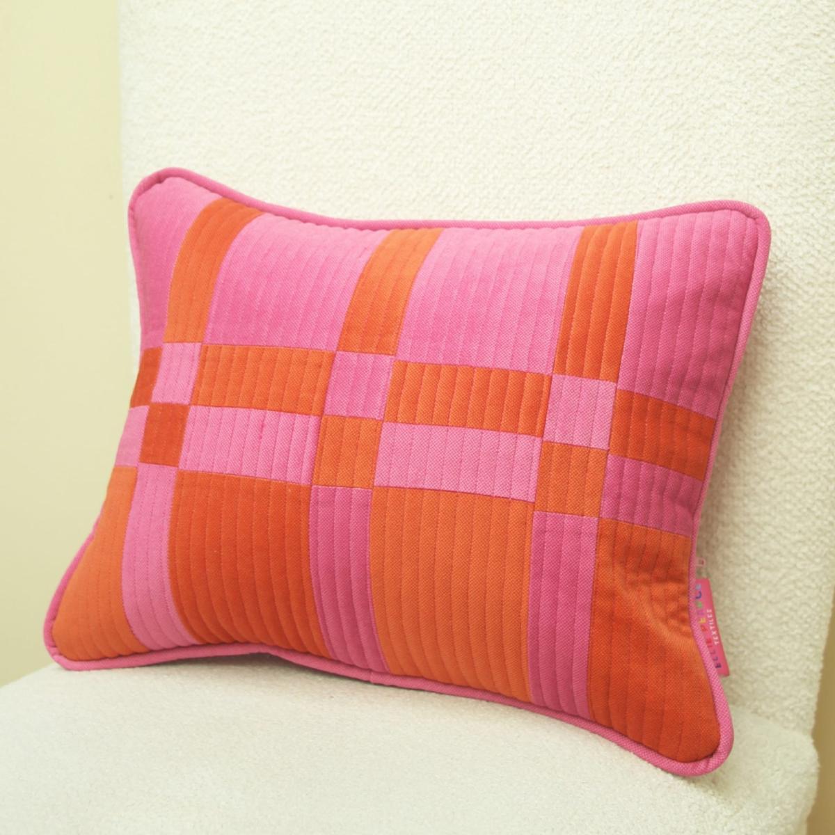 Rectangular Velvet Checked Quilted Cushion - Pink & Orange Ellie Pearce Textiles