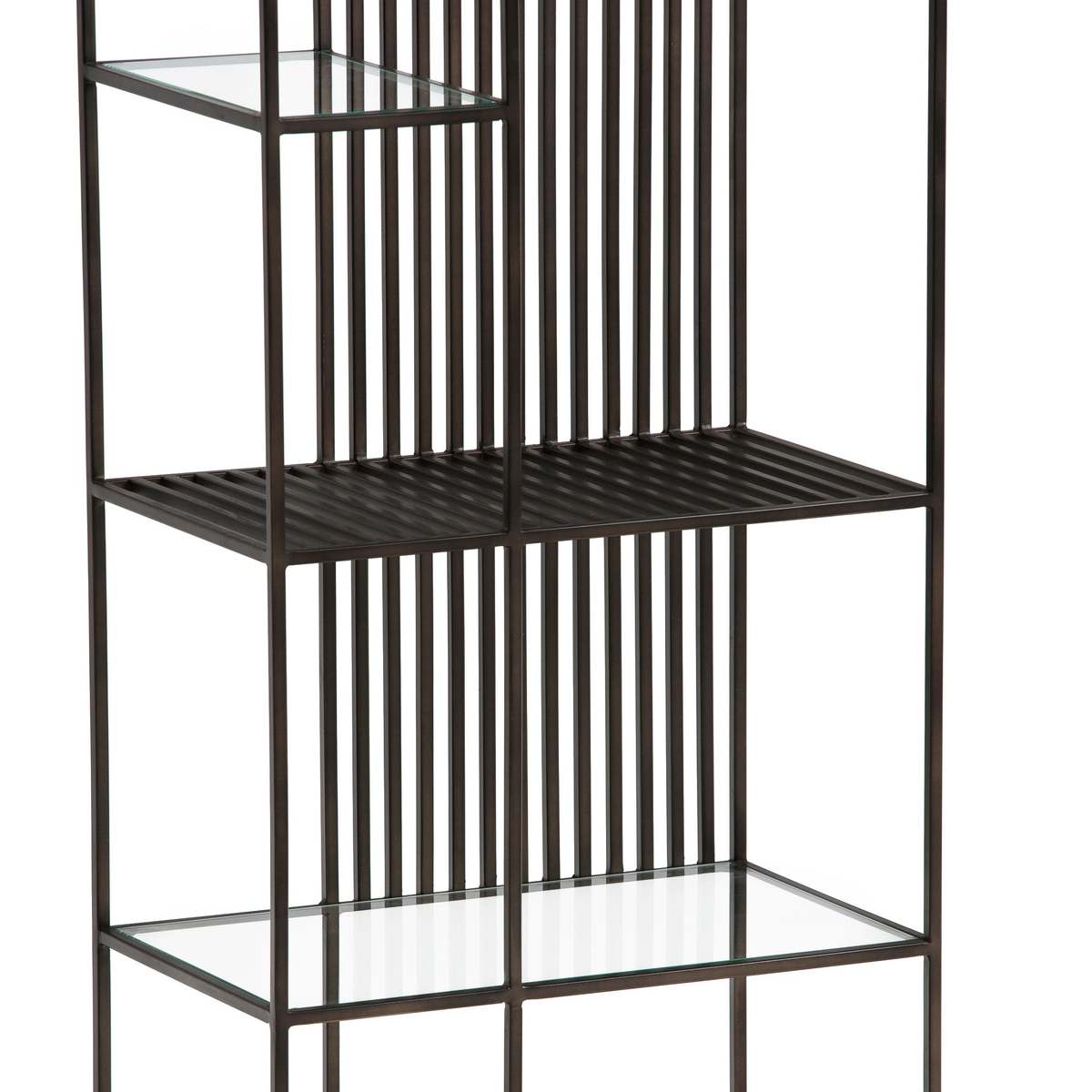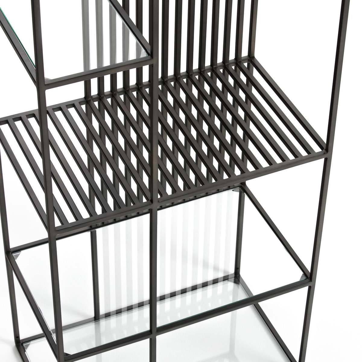 I love this bookcase for its sleek, industrial aesthetic that suits contemporary and minimal interiors perfectly. Its clean metal and glass design allows it to blend seamlessly into both office settings and living spaces, adding a touch of sophistication without overwhelming the room. Practical styling tips include playing with contrasting colours and textures, such as pairing it with colourful books or decorative objects for visual interest, or keeping the shelves sparse for a more modern look. It works particularly well in spaces that benefit from a light, airy feel, and can be styled to enhance a streamlined, organised vibe or to display statement pieces thoughtfully.