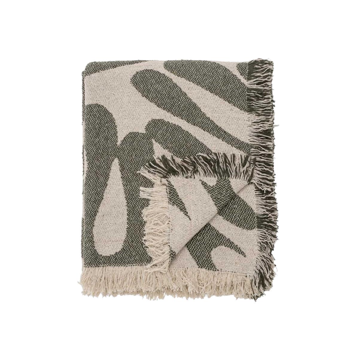 RECYCLED NATURE FRINGED THROW, Green Cotton Blend | Barker & Stonehouse