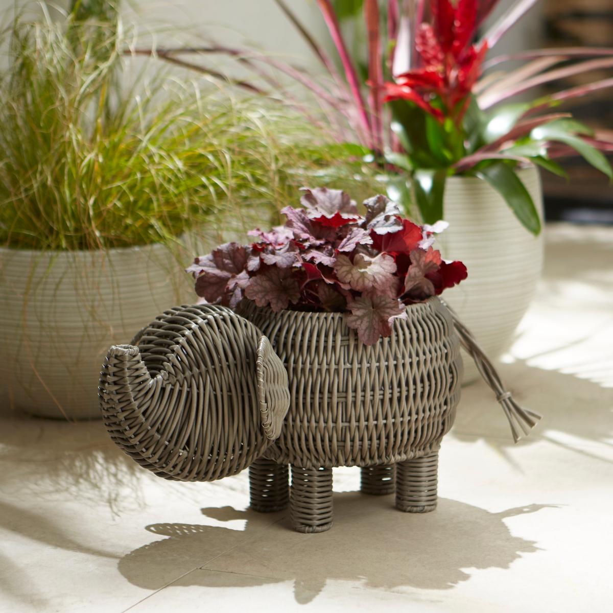 I love this elephant plant pot for its playful yet stylish take on recycled rattan; it adds texture and warmth to any space. It works well in boho, tropical, or eclectic interiors, especially when paired with natural fibres and earthy tones. Practical styling tips include placing it on a side table or windowsill to highlight its unique shape, or combining it with a variety of plants for a layered, vibrant look. Its compact size makes it versatile for both small corners and larger shelving units, making it a charming focal point without overwhelming the space.