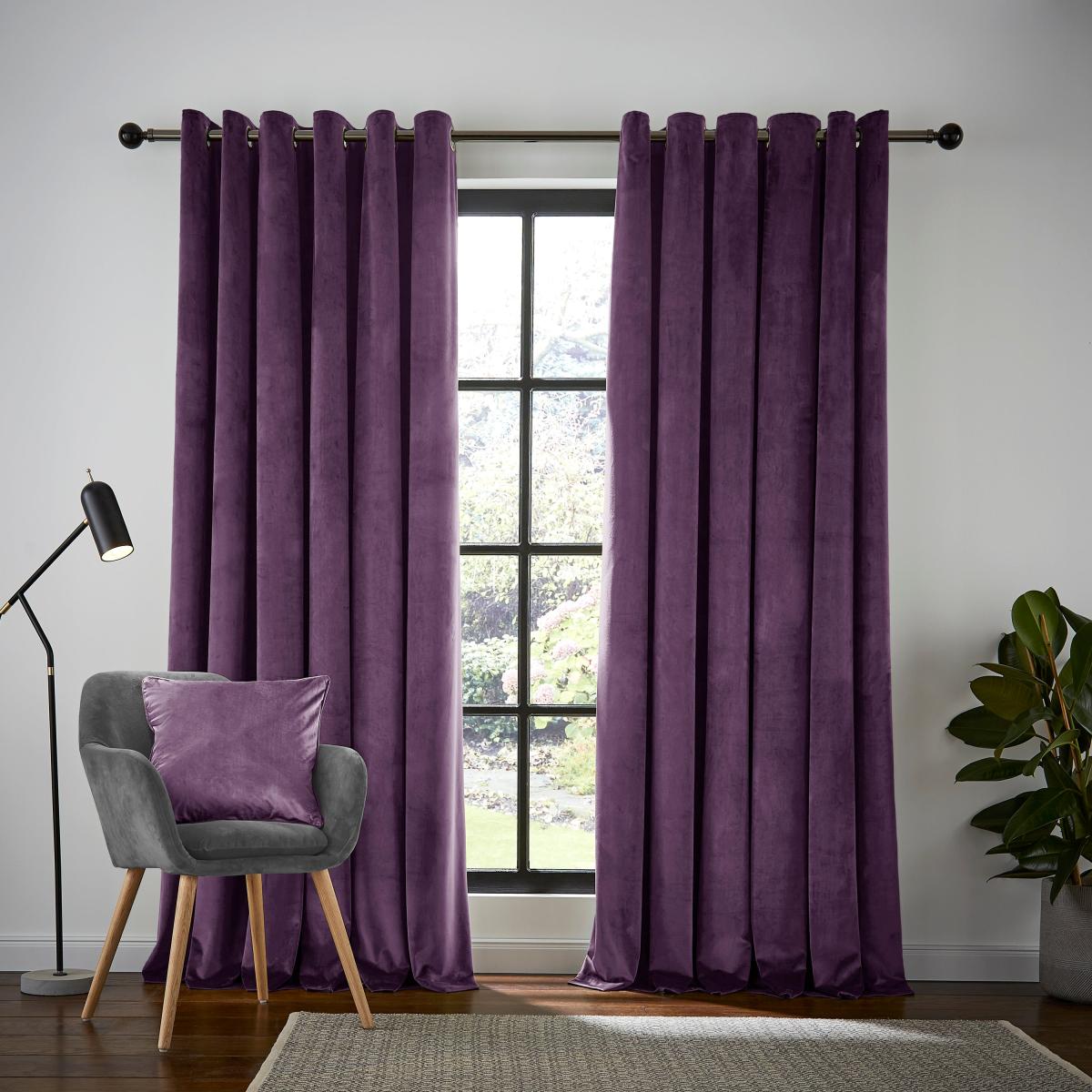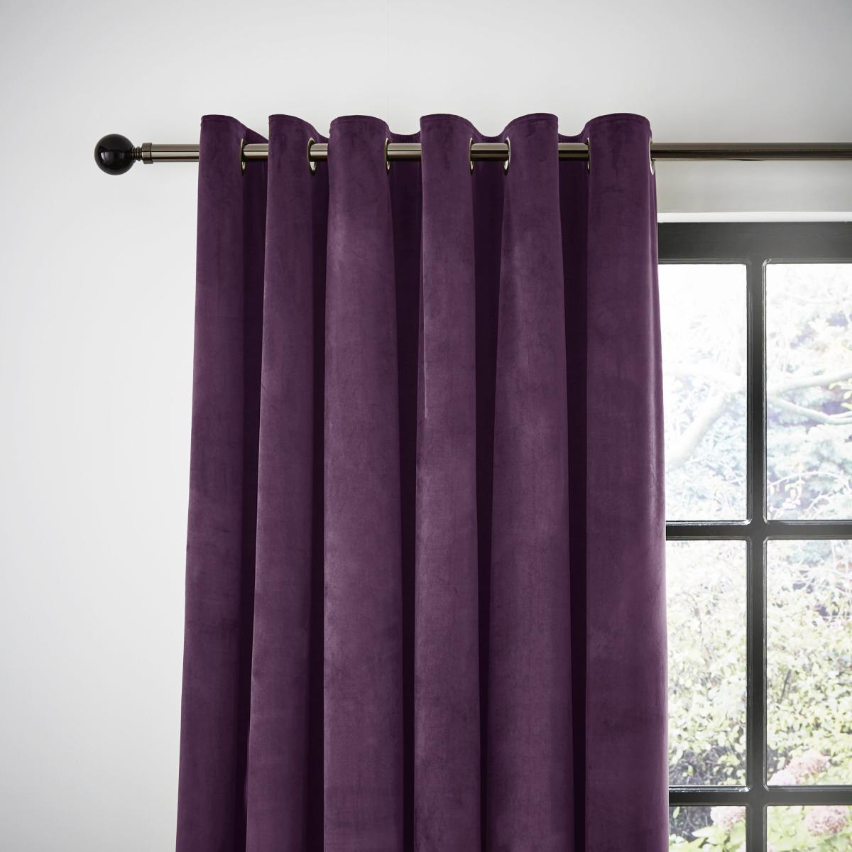 Recycled Velour Aubergine Eyelet Curtains Aubergine (Purple)