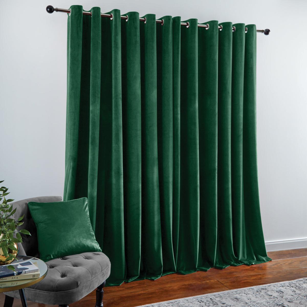 I love this green velvet curtain for its luxurious texture and rich colour, which instantly adds warmth and sophistication to a room. It works especially well in modern or eclectic interiors where a pop of colour can be a focal point, or in more classic schemes where its depth complements deeper palette tones. The bottle green tone is versatile, pairing beautifully with neutrals or metallic accents. For styling tips, consider layering it with sheer curtains for versatility in light control, or pairing it with bold cushions and accessories to create a cohesive look. Its eyelet design also makes for a quick, clean hang, perfect for updating a space without fuss.