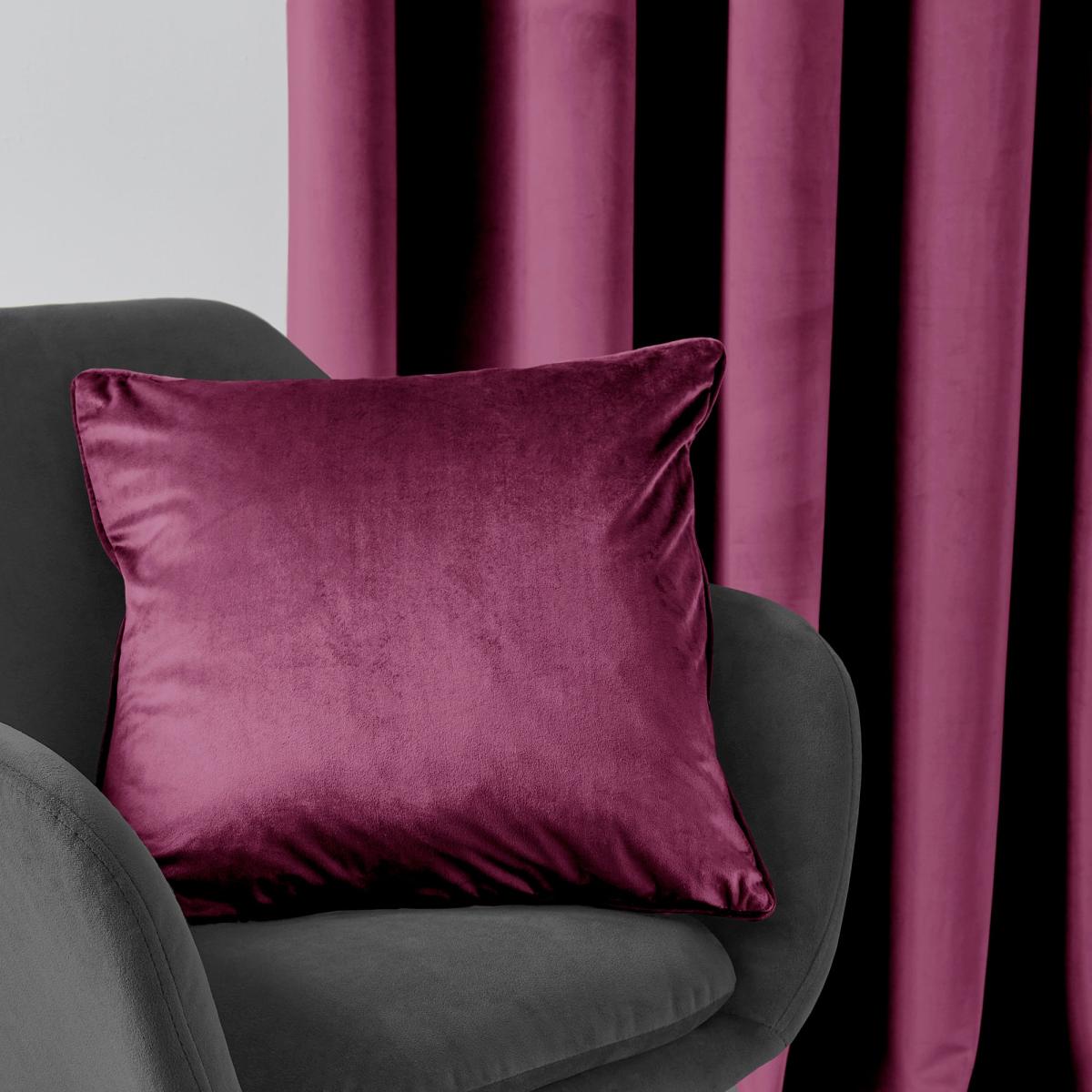 * Recycled velour cushion* Machine Washable* Beautiful Velour Plain Dyed Colors* Confection with Zip to secure inserted filling* Plump and durable polyester hollowfibre filling in Nonwoven Cover Made from a luxuriously soft velvet fabric, this stunning cushion is available in a wide range of stunning colours, perfect for enhancing any home décor styles. Complete with a stylish piped edge, this cushion features a 100% recycled cover and polyester filling, and perfect for matching with our range of Recycled Velour Curtains.