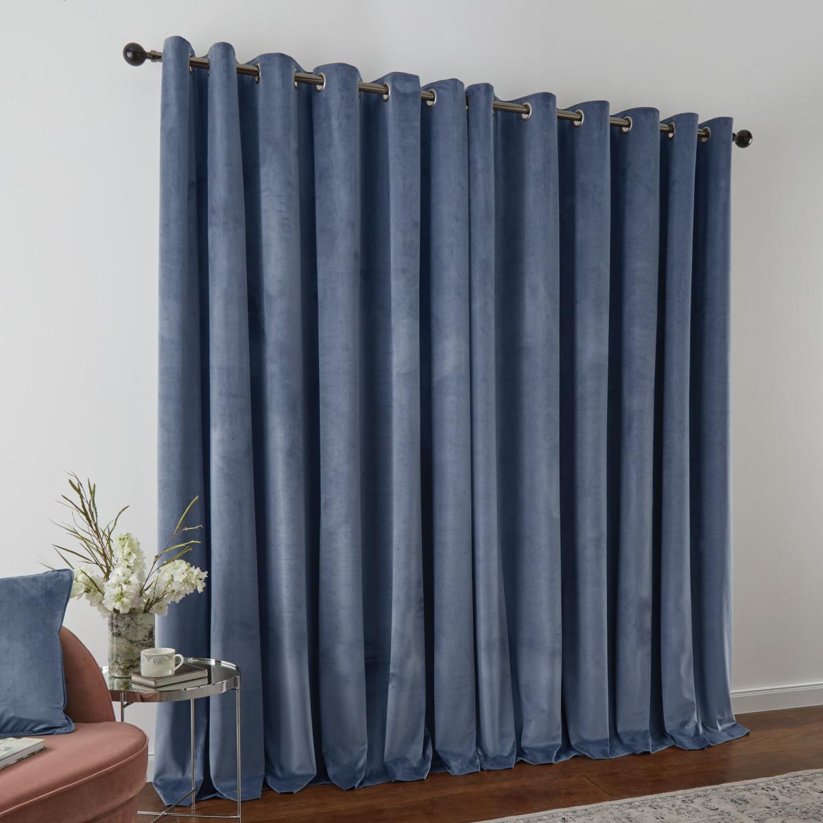 Recycled Velour Folkstone Blue Eyelet Curtains Blue