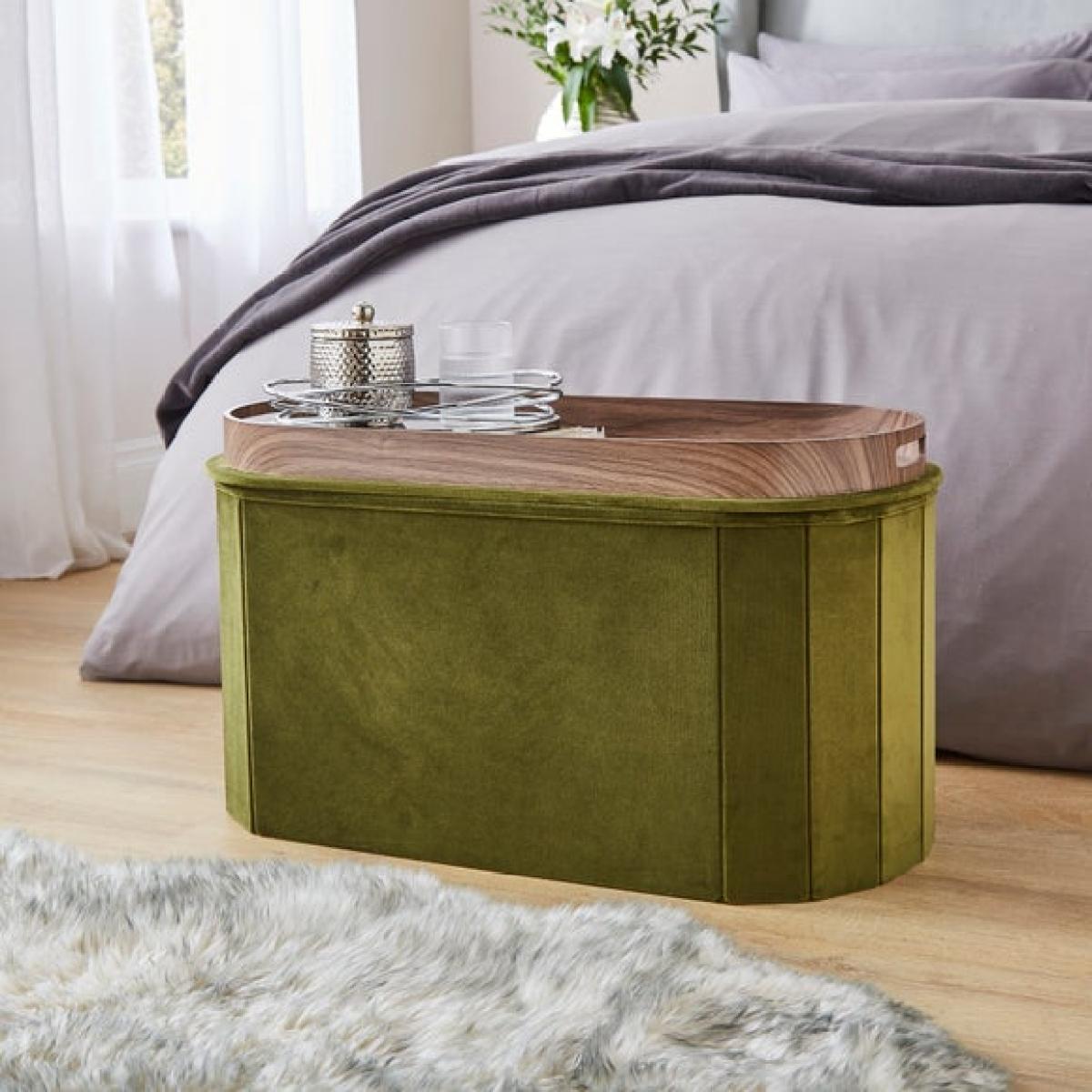 The recycled velour lozenge ottoman with tray is both practical and stylish, making it a versatile addition to various interiors. I love how its soft velour finish adds a touch of luxury, while the recycled material makes it an eco-friendly choice. It works particularly well in contemporary or mid-century inspired spaces, but can also blend seamlessly into eclectic or cosy schemes. To style it effectively, consider placing it in a living room as both a footrest and extra seating, or use it in a bedroom as a handy bench or surface for books and decor. Keep accessories minimal to highlight the elegant shape, and use contrasting cushions or throws for added texture and colour.