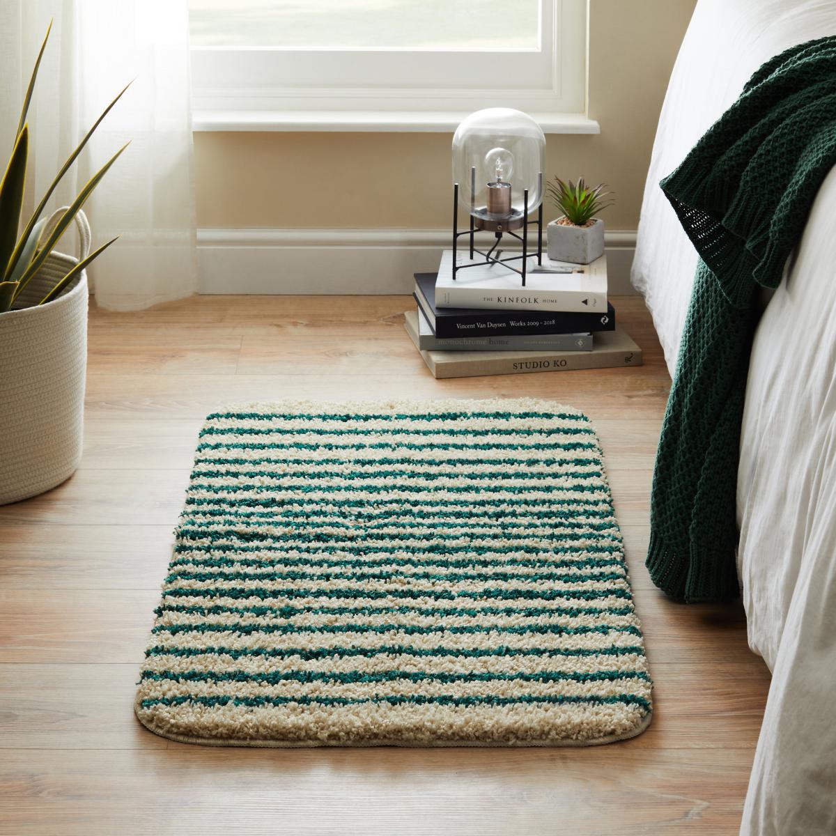 Recycled Washable Emerald Shaggy Stripe Doormat Emerald