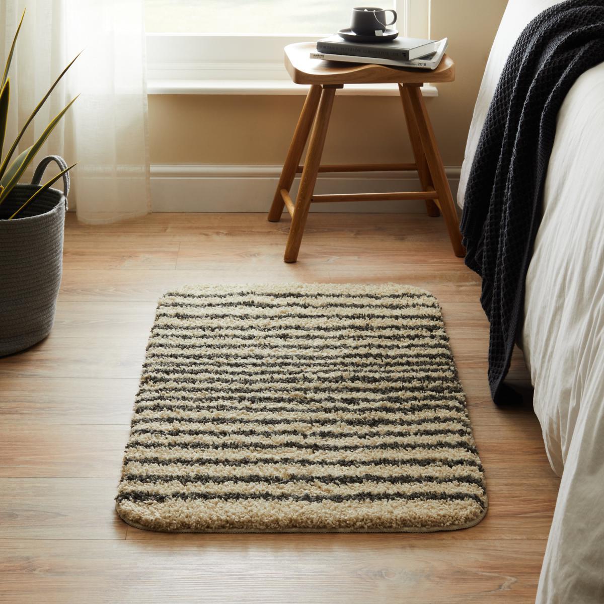 Recycled Washable Grey Shaggy Stripe Doormat Grey