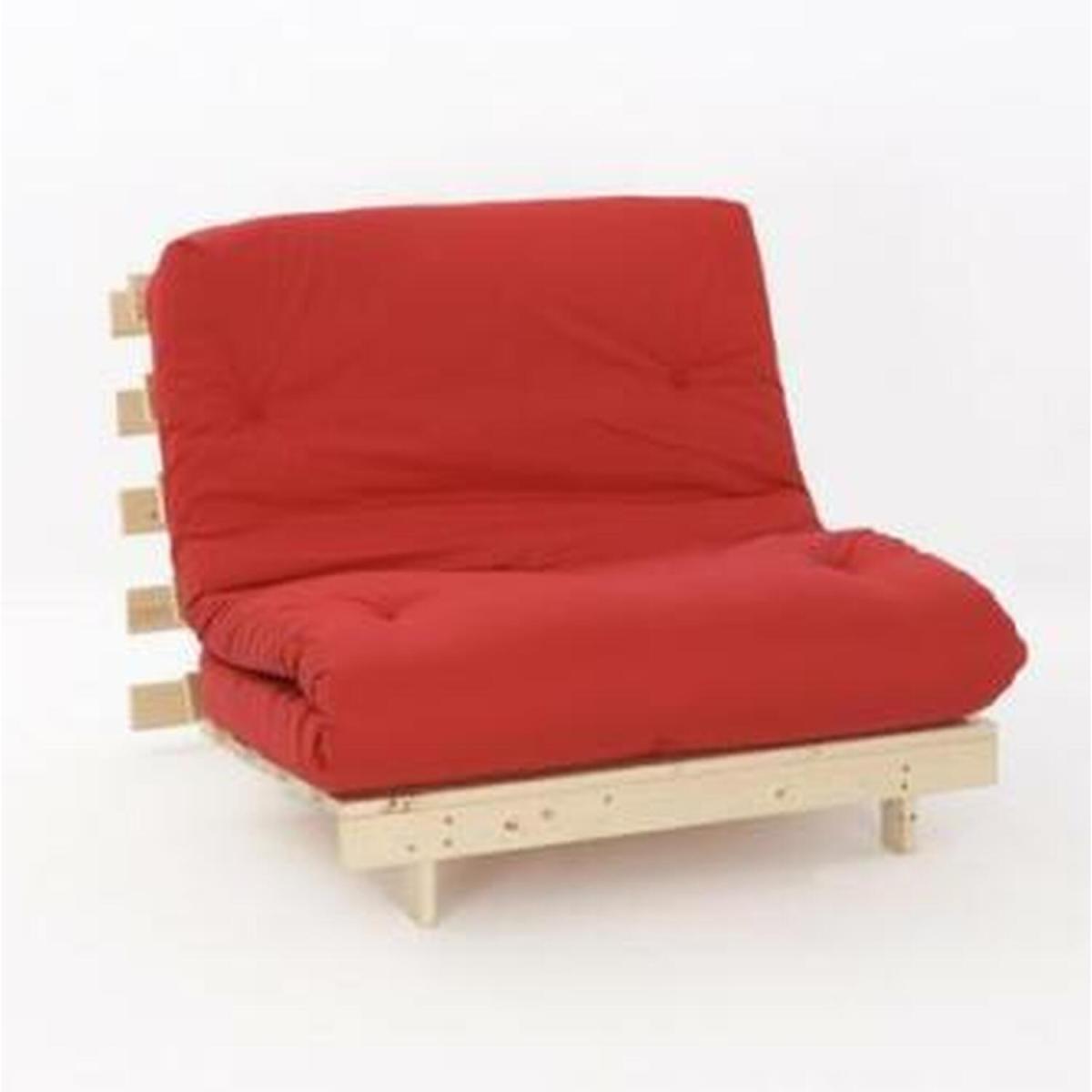 This great value, easy to use futon is a great addition to any room. A comfortable, compact solution for that unexpected guest. The base is a solid, wooden pine frame. It is sturdy, practical and can be painted easily, to match any room. The premium luxury mattress is tufted and made from an extra thick quality woven filling with a non-removable, in a 100% cotton drill cover. We fill the mattress layers of felt, wool and polyester blends, extra layers have been added for that premium, extra-thick comfort. The extra thick mattress comes with matching coloured buttons. In seconds the futon goes from a comfortable 1 person sofa to a full-size single (3ft) bed and vice versa. This futon is ideal for any occasion, use a practical chair or a comfy bed.