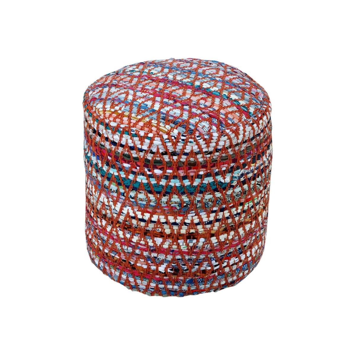 Red and Multi-Colour Chindi Design Circular Bean Filled Pouffe - Multicolour