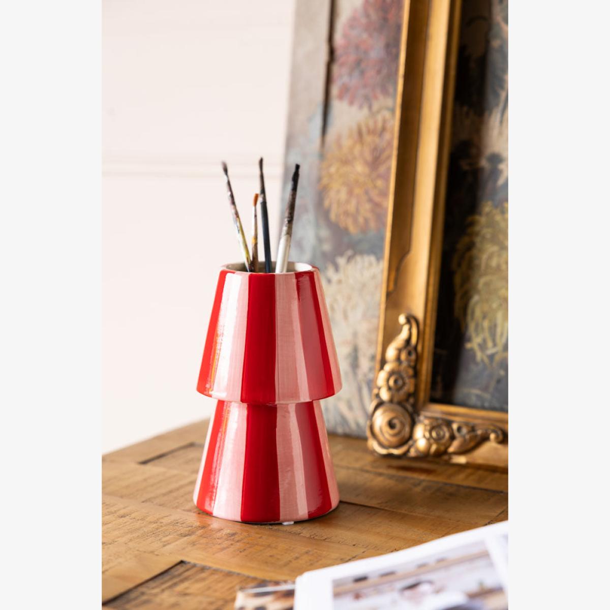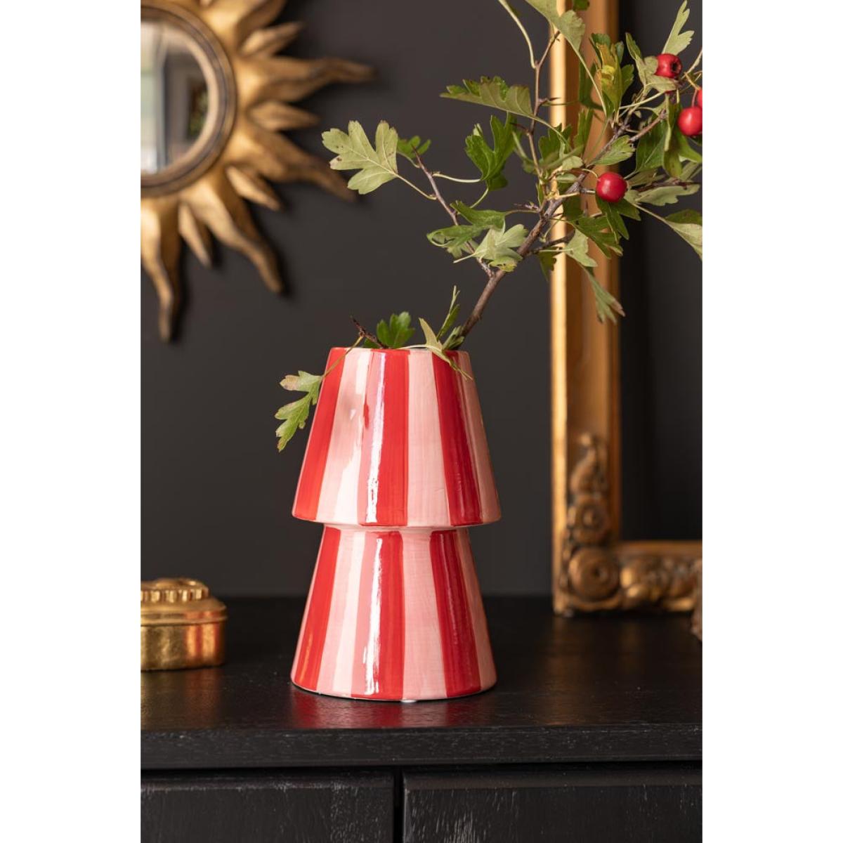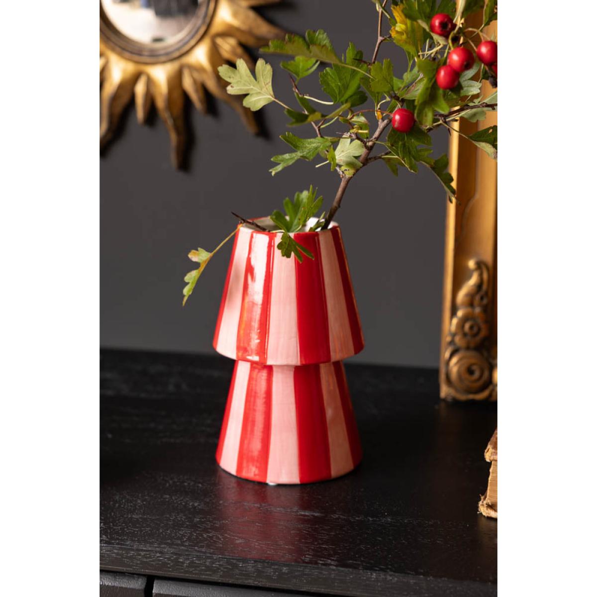 Say hello to your new favourite bud vase: the Red & Pink Stripe Flower Vase. With its unique, double-layered silhouette and vibrant vertical stripes, this small vase is the queen of colourful home decor. She’s rustic, she’s colourful, and she's got all the vibes – alternating between a deep, romantic red and the prettiest pop of pink, it’s evoking a farmhouse flair meets modern art gallery. The shape is one of a kind, think sculptural and curvy in all the right places – a real showstopper, even without the flowers. Pop it on your dining table, shelf or windowsill and prepare for the compliments to roll in. Bold yet warm, playful yet grounded. - Red & Pink Stripe Flower Vase - Measures: W10cm x L16cm x L10cm - Materials: Dolomite