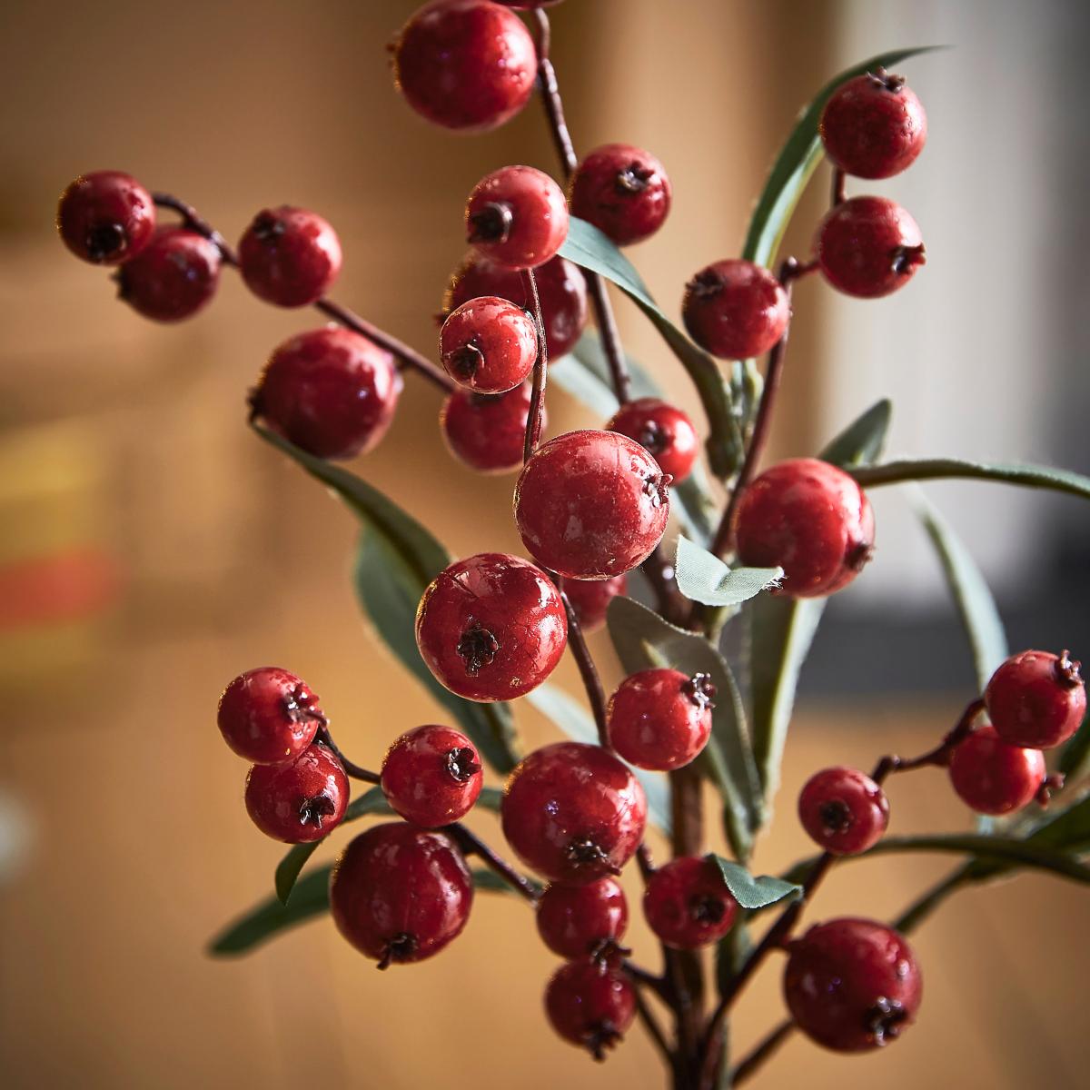 I love the red berry stem for its vibrant colour and realistic texture, making it a versatile addition to various interior styles. It works particularly well in contemporary, minimalist spaces where a pop of colour can add warmth, or in more rustic or festive settings for seasonal decorating. Practical styling tips include placing it in a sleek vase to create eye-catching centrepieces, or grouping with other contrasting faux foliage for a fuller display. Since it’s artificial, it’s low maintenance and perfect for adding colour year-round without the fuss of fresh flowers.