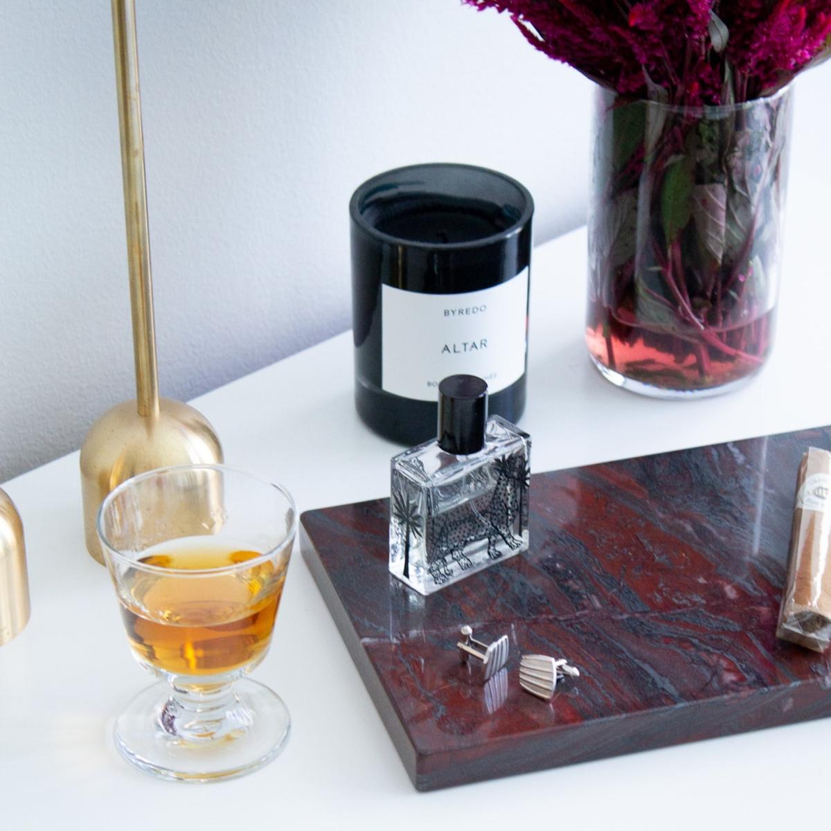 I love how the red and black marble tray adds a touch of sophistication and boldness to any space. It works particularly well in glamourous or contemporary interiors, where it can serve as a statement piece on a dressing table or bathroom vanity. Practical styling tips include pairing it with metallic accents or glassware to highlight its sleek finish, and using it to organise essentials like jewellery or skincare items. Its rich colour palette makes it versatile enough to complement both muted and more vibrant decor schemes, making it a stylish yet functional addition to your sculptural collection.