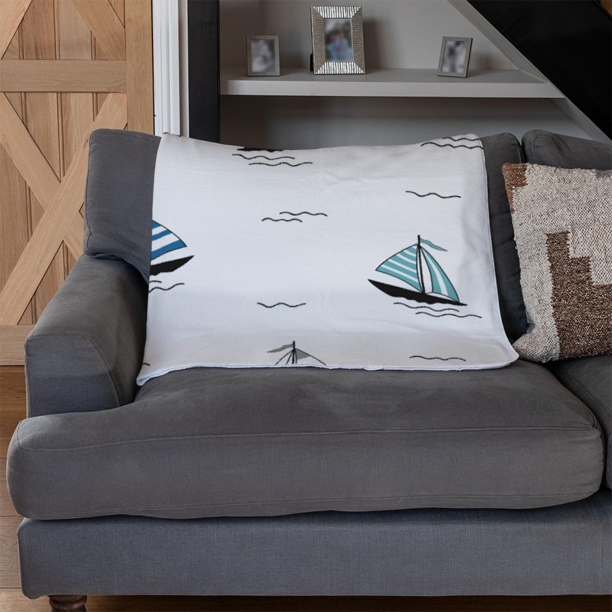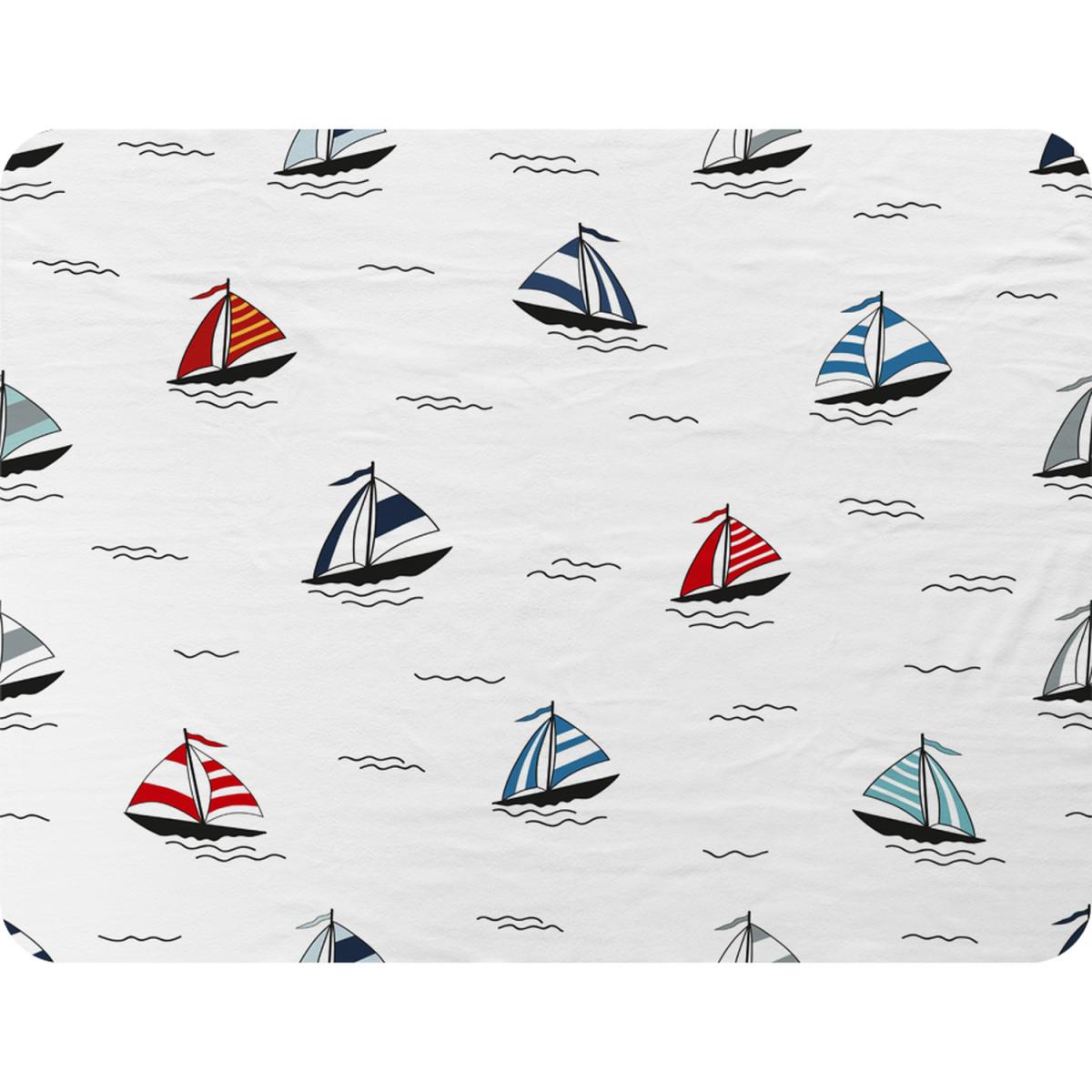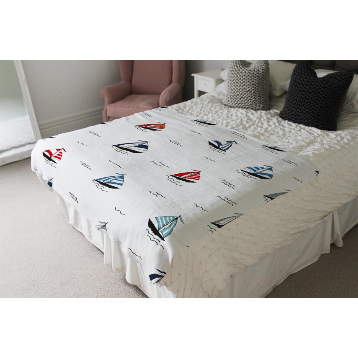 Red Blue Sailboats Blanket - White